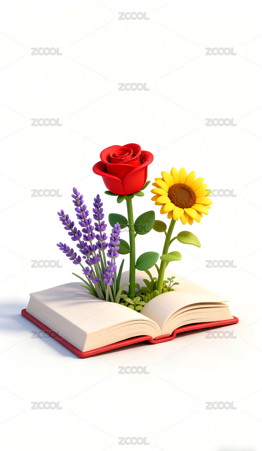 3D立体书本上的植物花朵模型