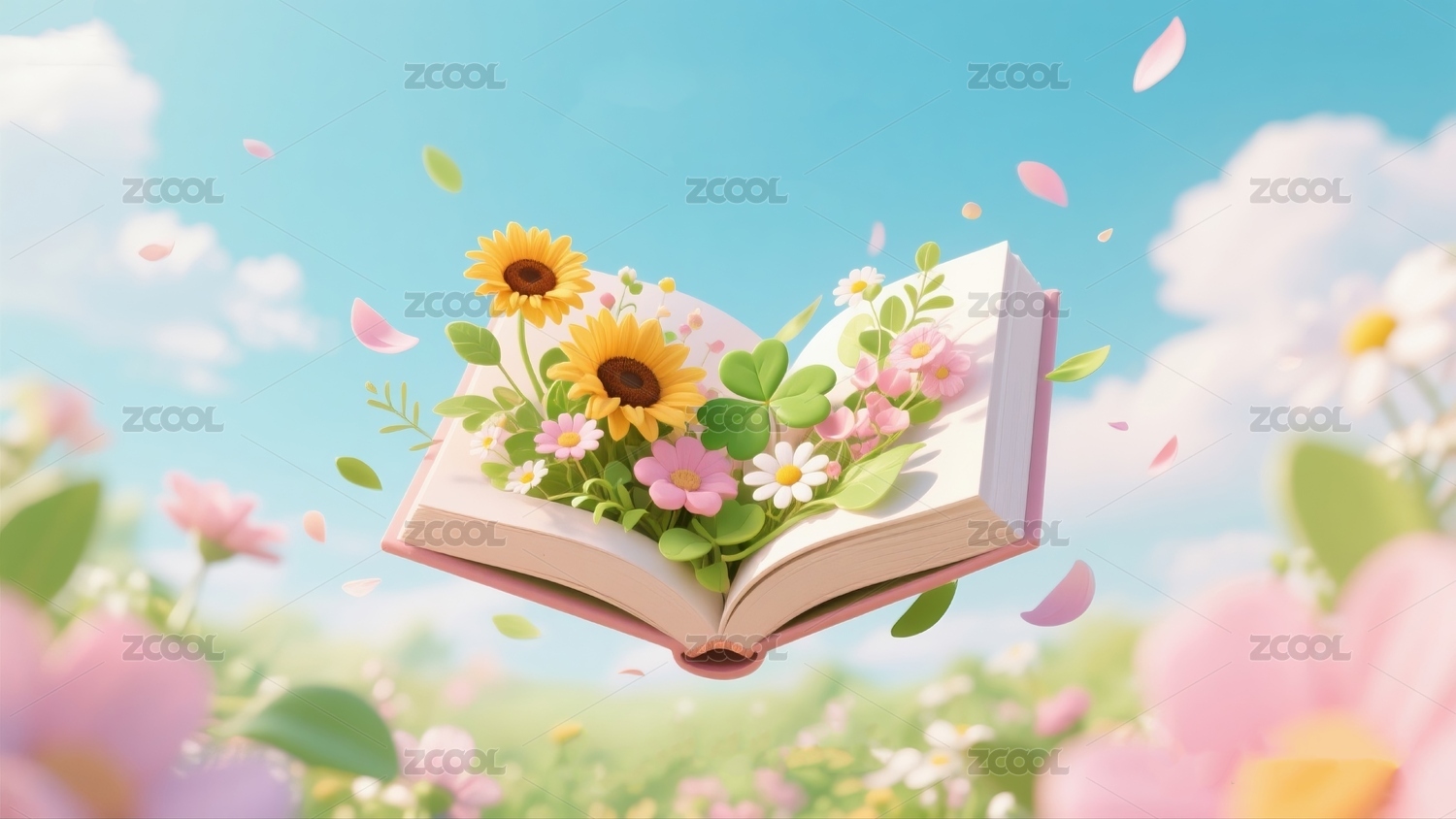 书本花朵创意装饰场景