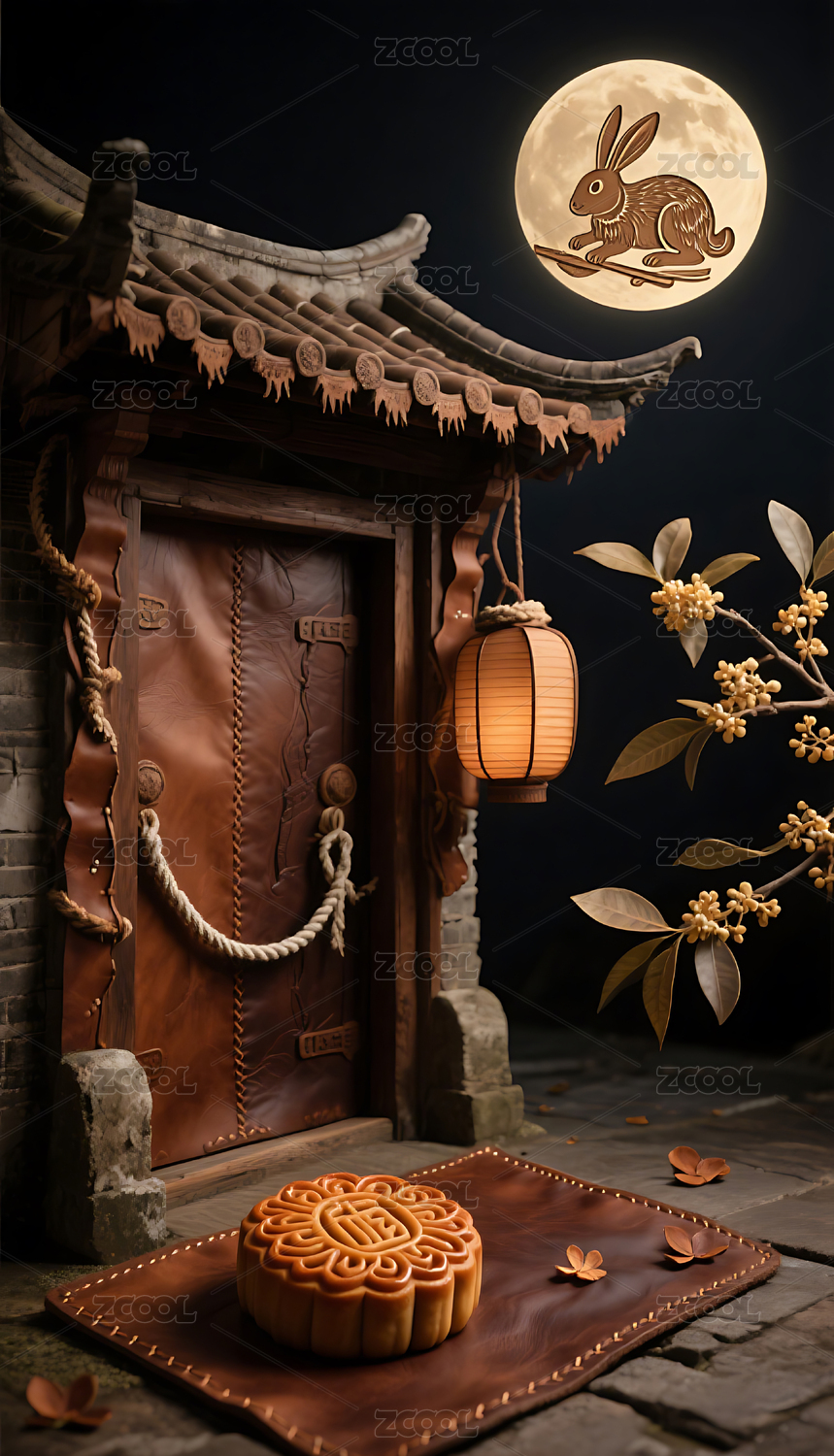 皮革质感,中秋节,背景,壁纸,月亮,插画,建筑