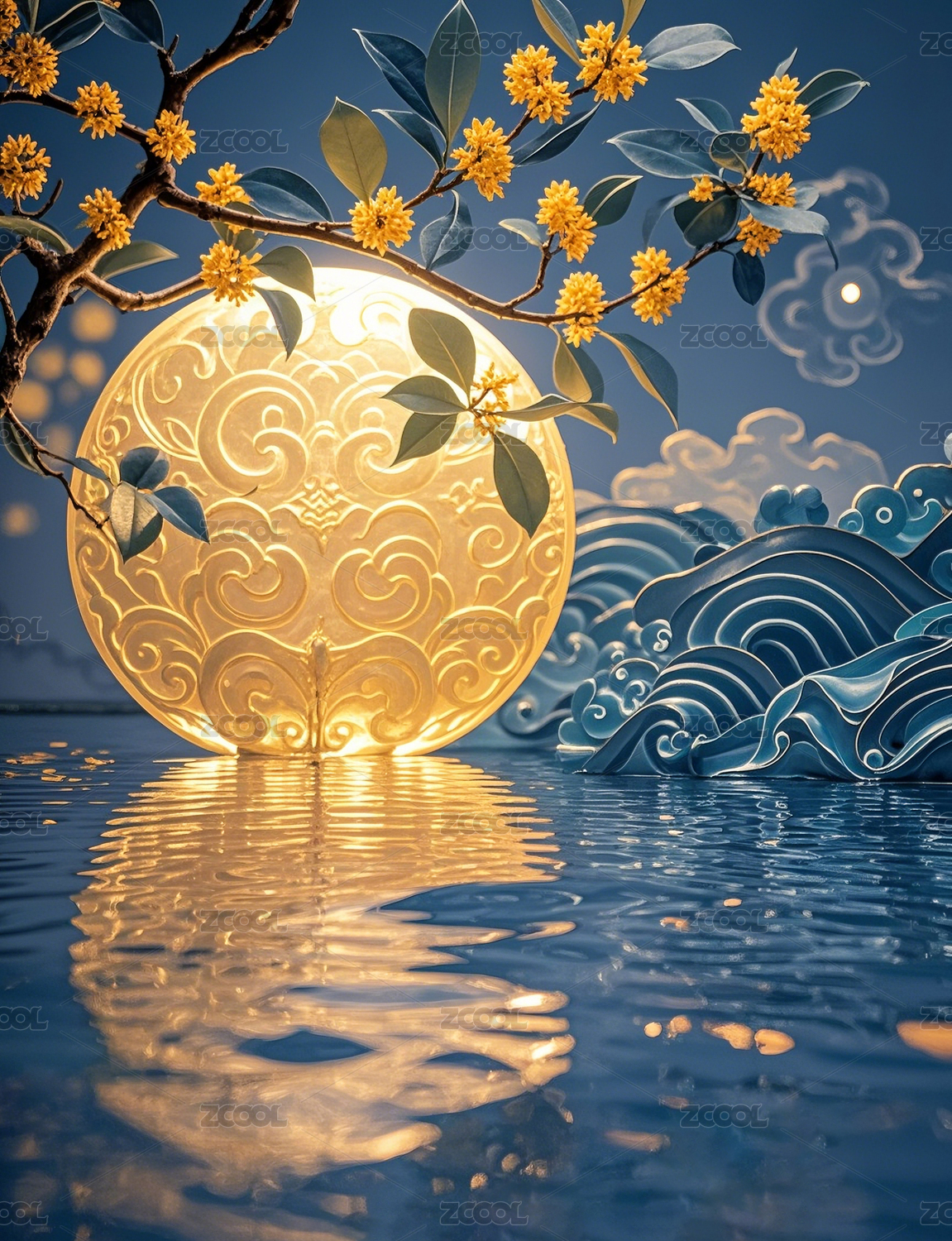 明月浪花国风插画场景