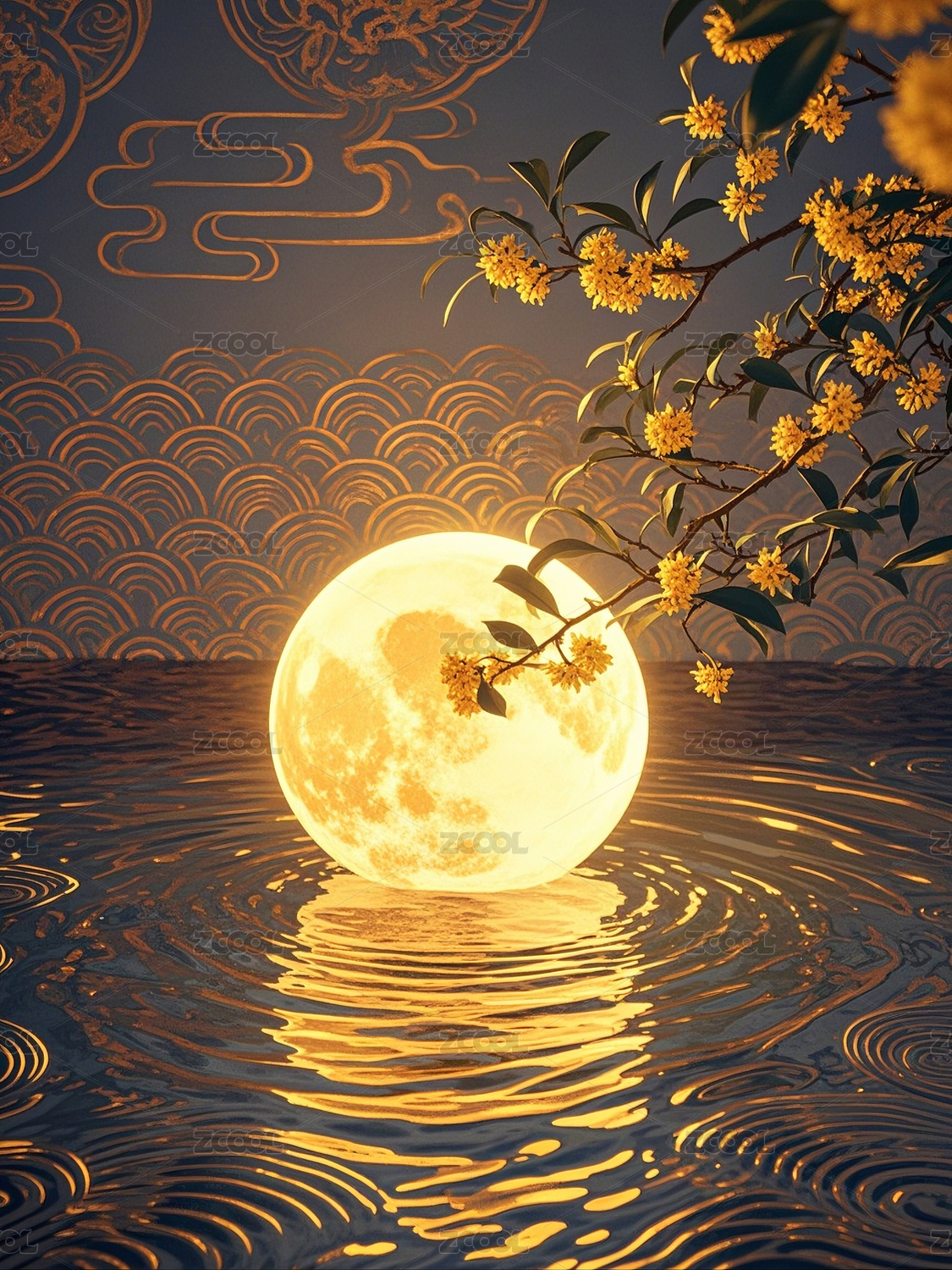 中秋节,月亮,桂花,背景,插画,传统