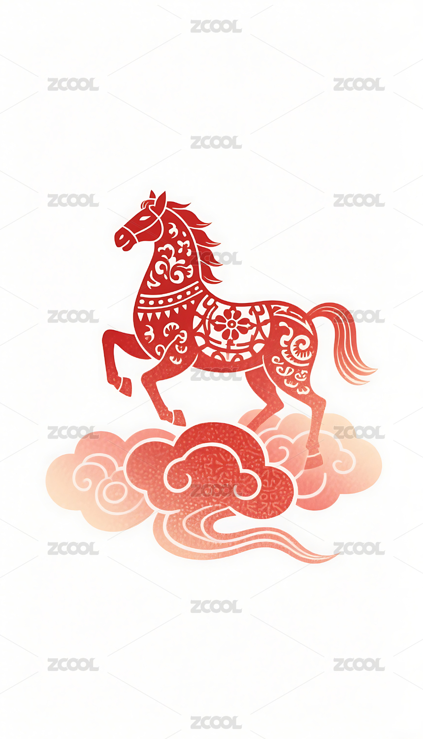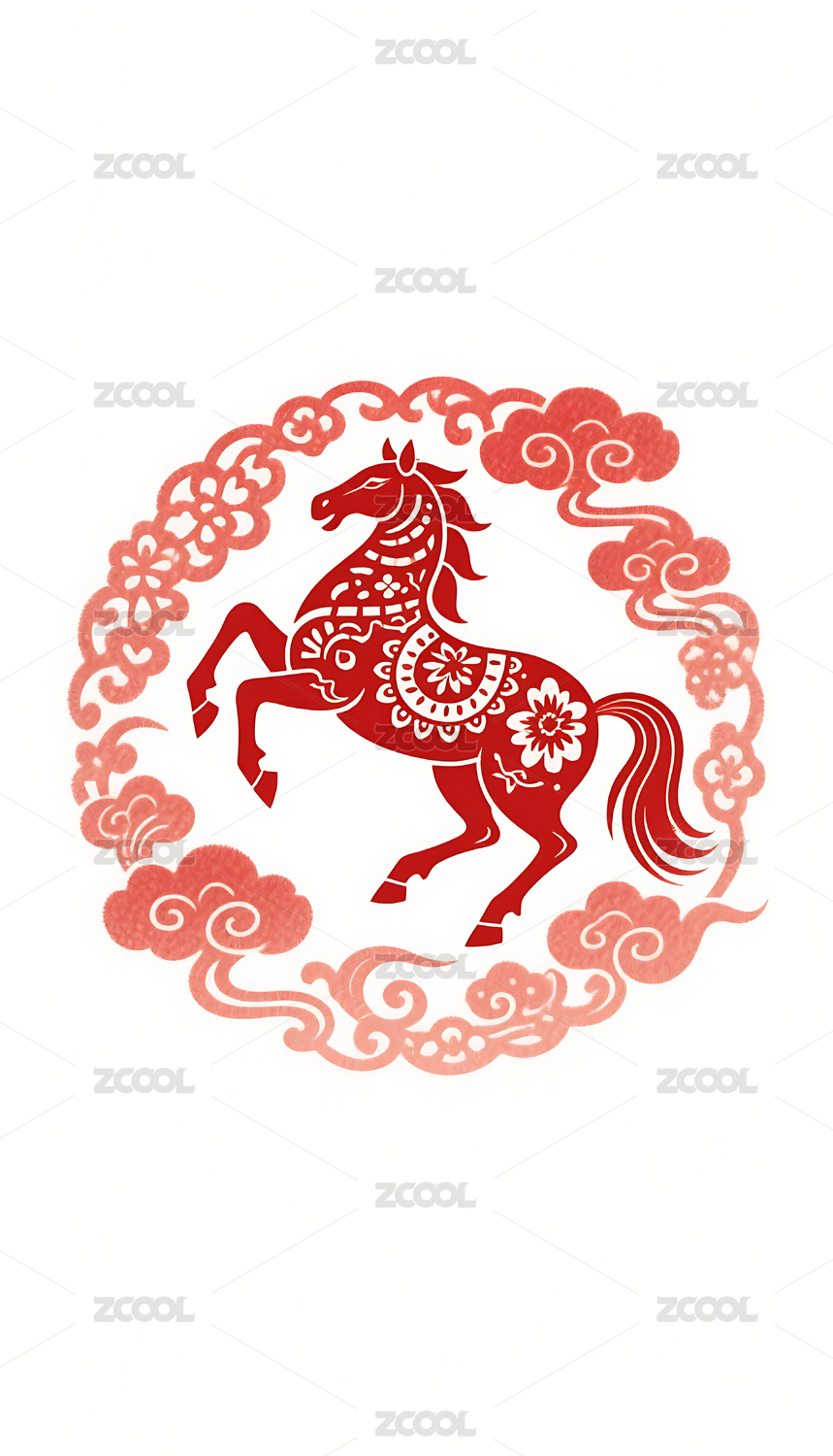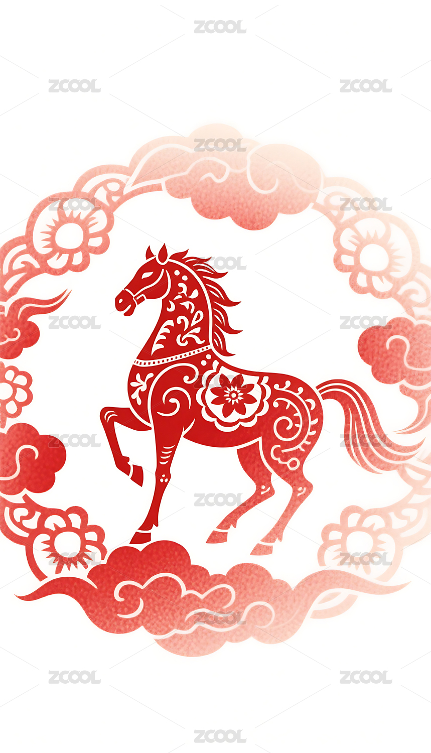红色传统马踏祥云剪纸