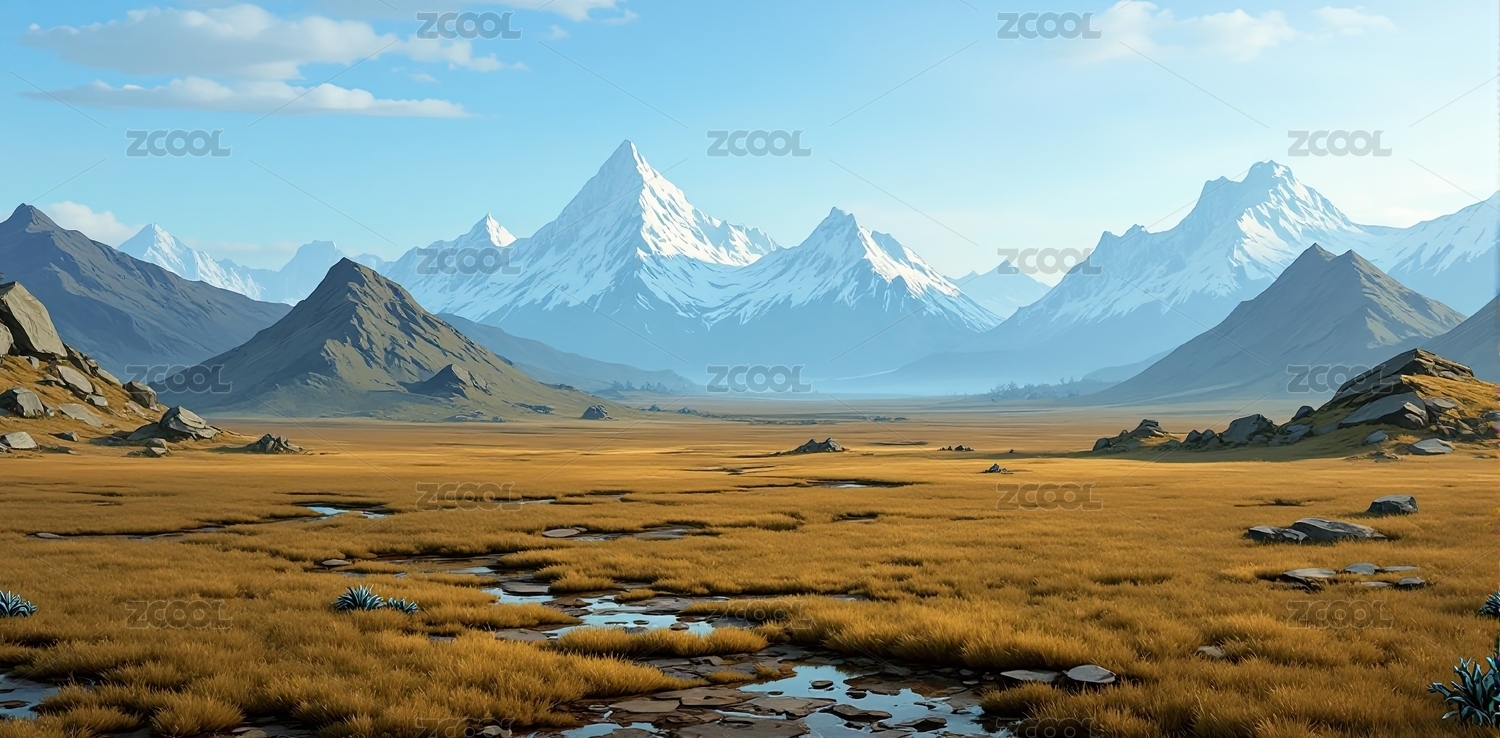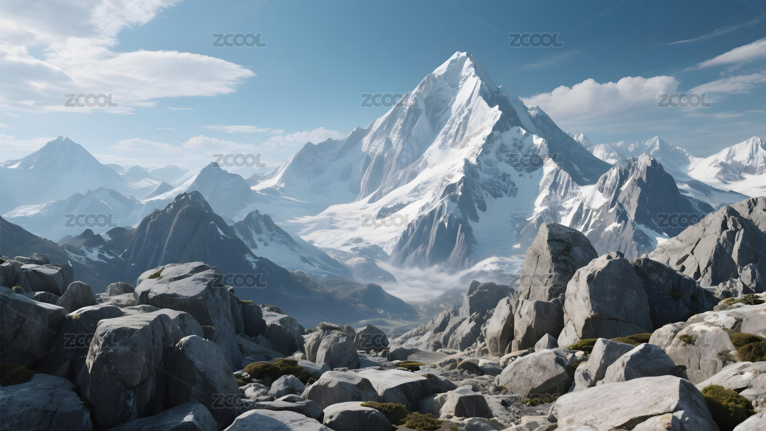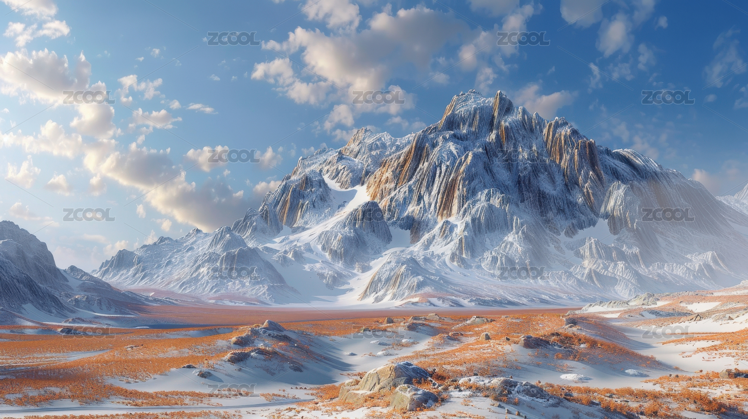 3D渲染山丘山脉高山大山山峰数字艺术插画