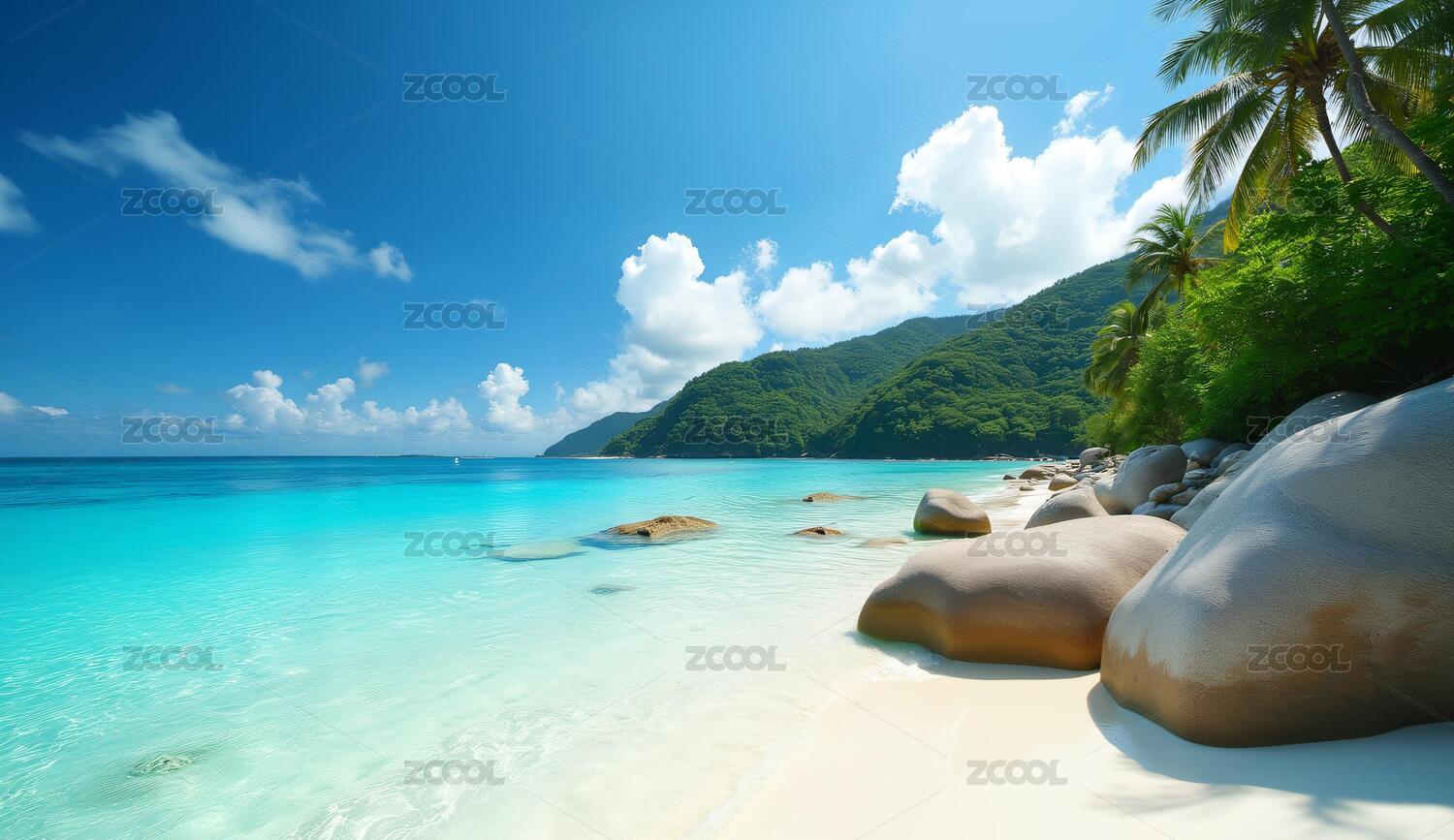 热带海滩与碧蓝海水
