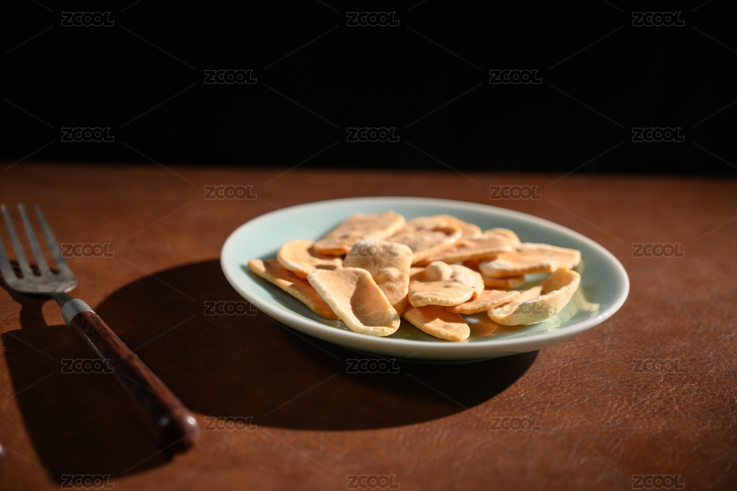 桌面上的盘子里的美味可口的竹盐黄皮干