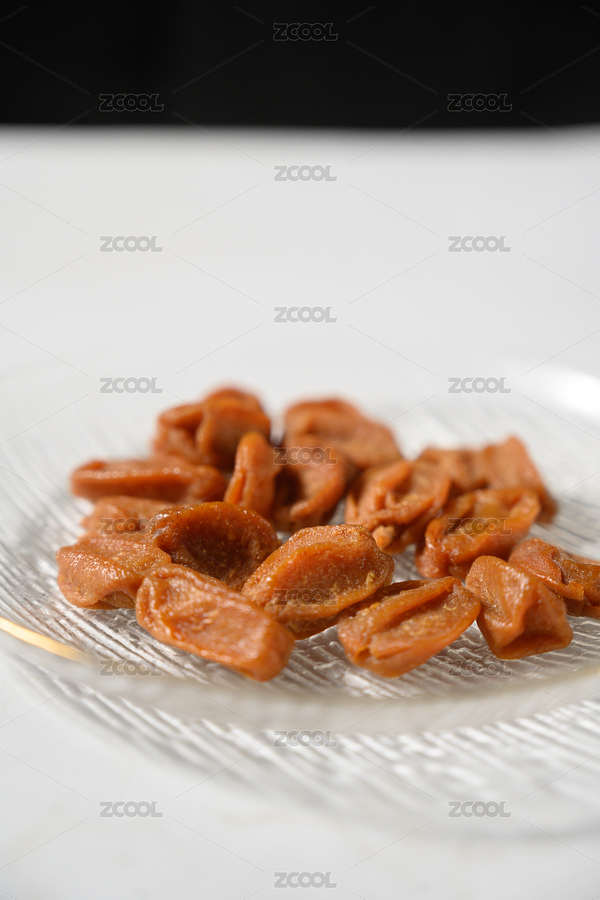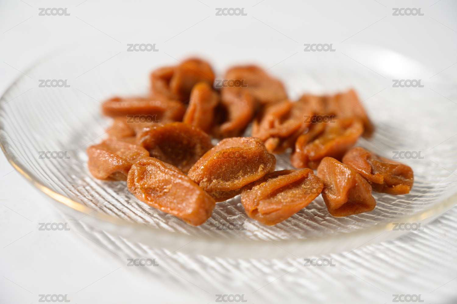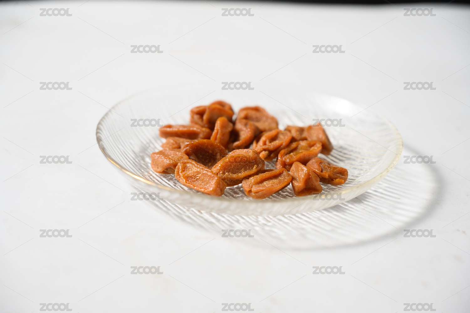 桌面上的盘子里的美味可口的竹盐黄皮干