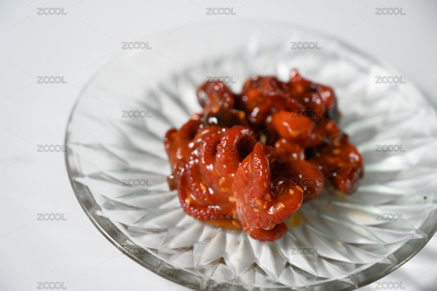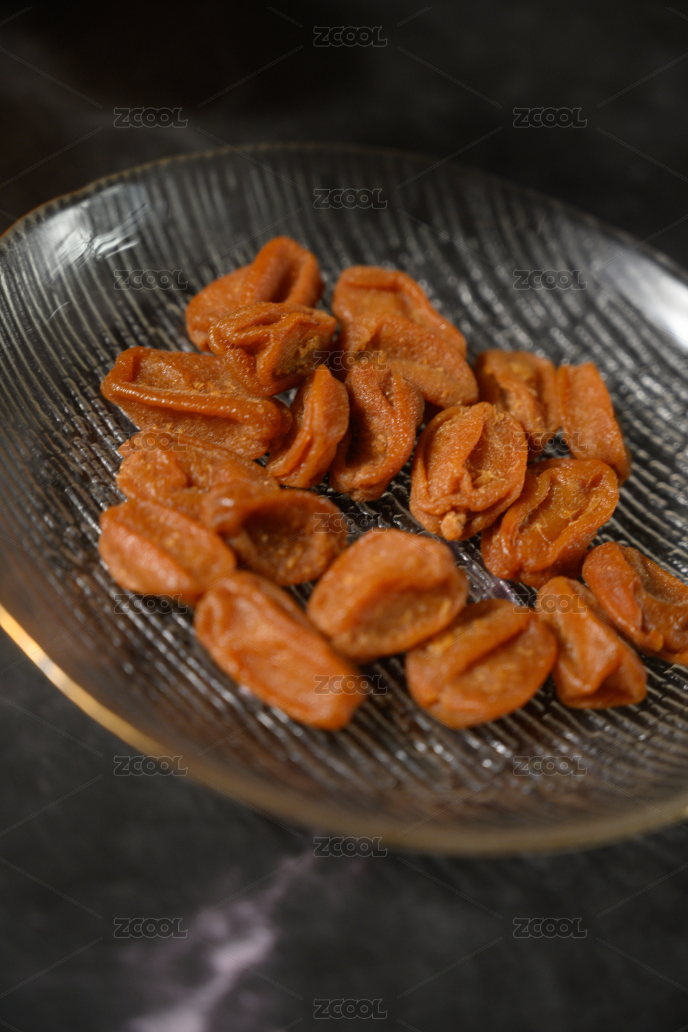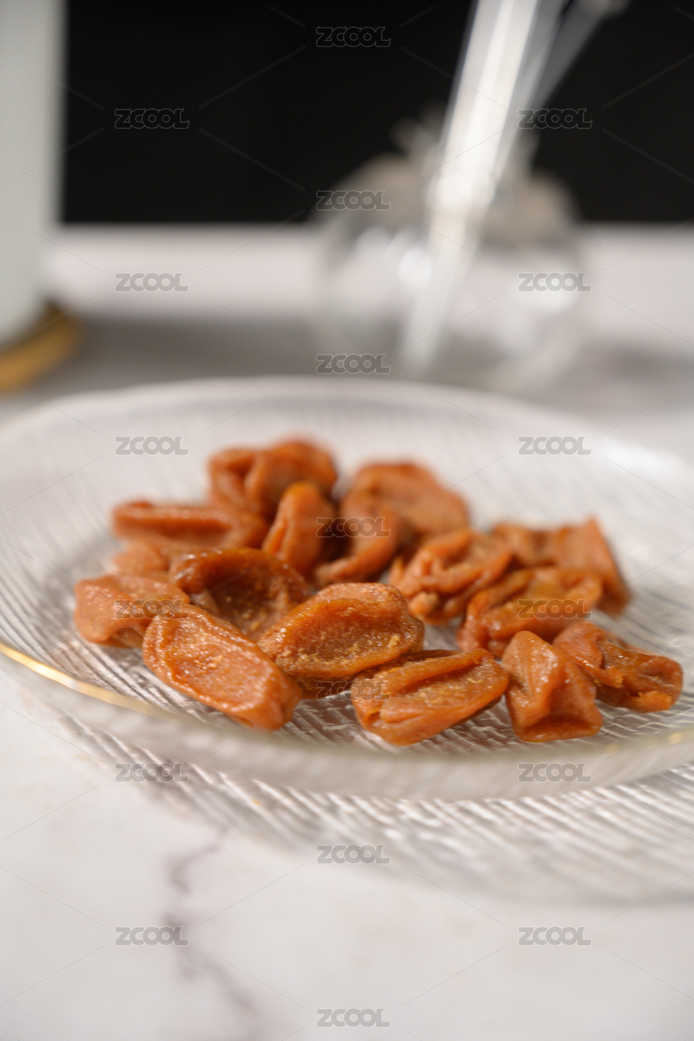 桌面上的盘子里的美味可口的竹盐黄皮干
