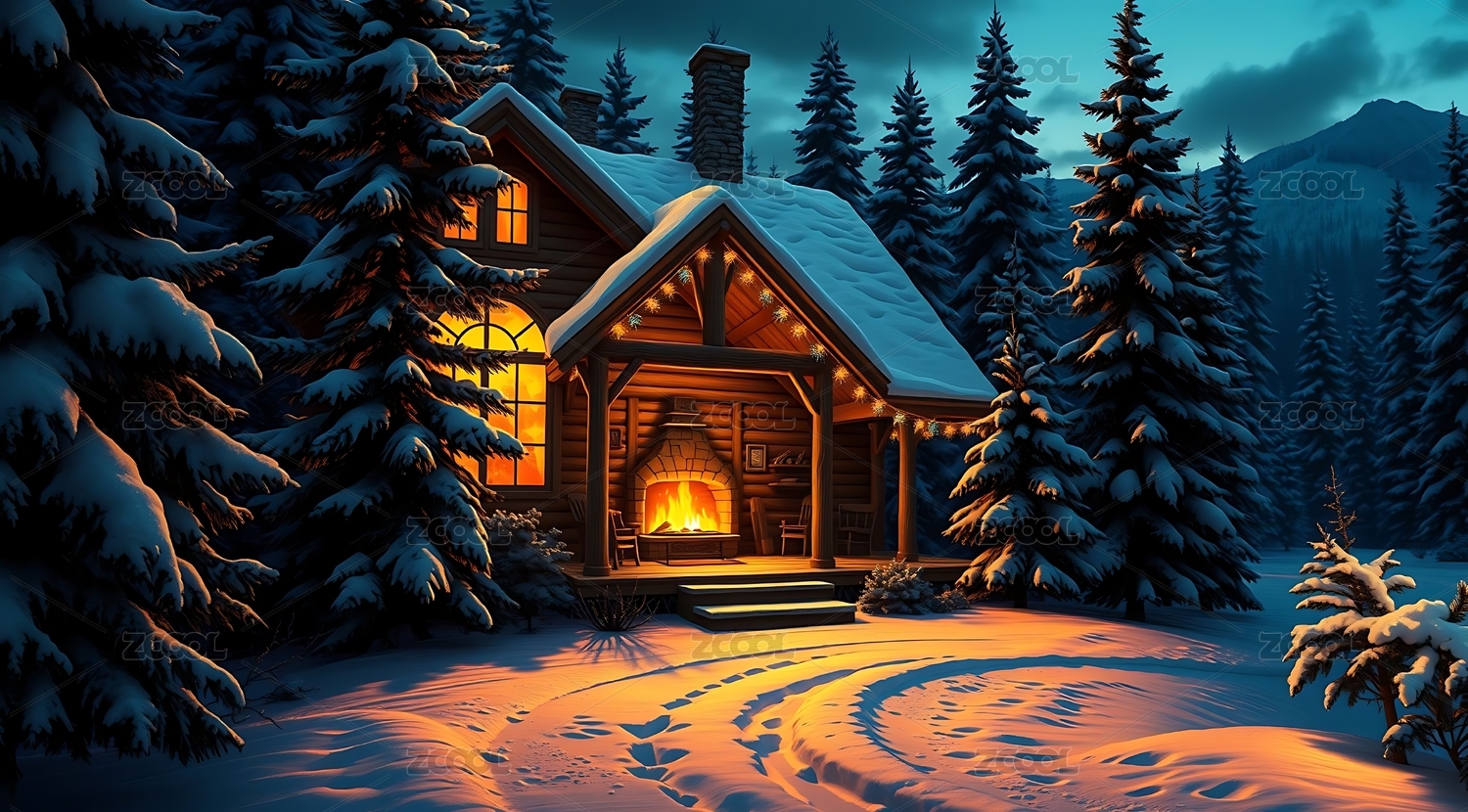 雪夜中的温馨木屋