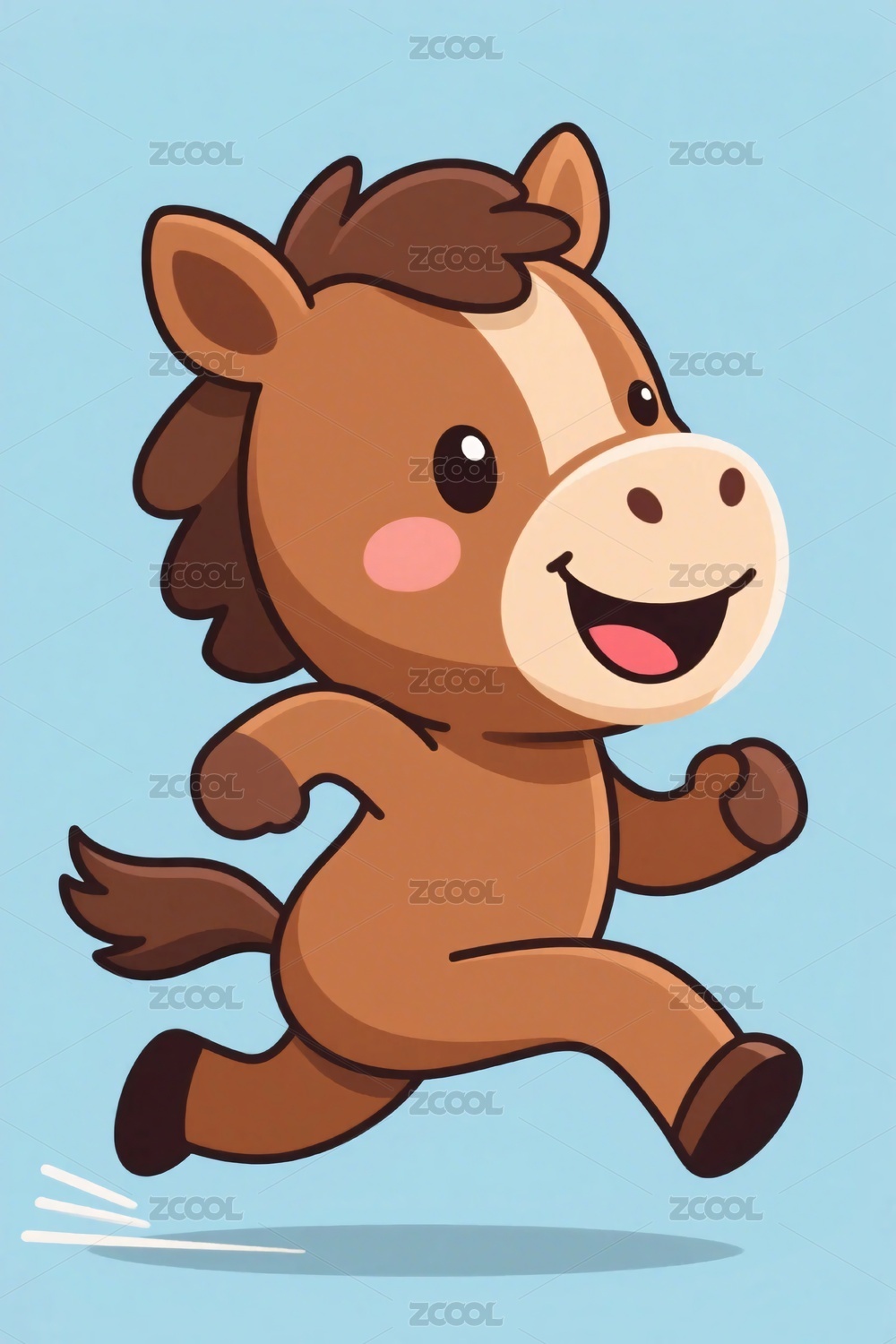 小马,奔跑,卡通,插画,可爱,动物,粉色,橙色,白色,蓝色背景