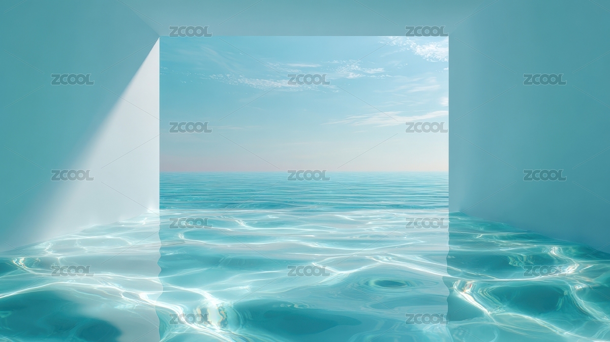 设计,宁静,建筑,现代,反射,海洋,景观,天空,蓝色,水