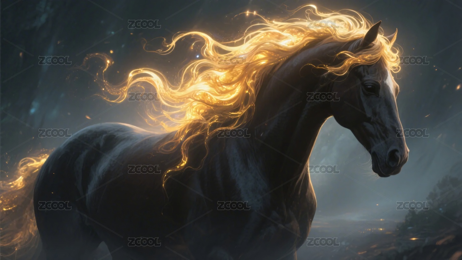 闪耀着火焰鬃毛的神秘骏马