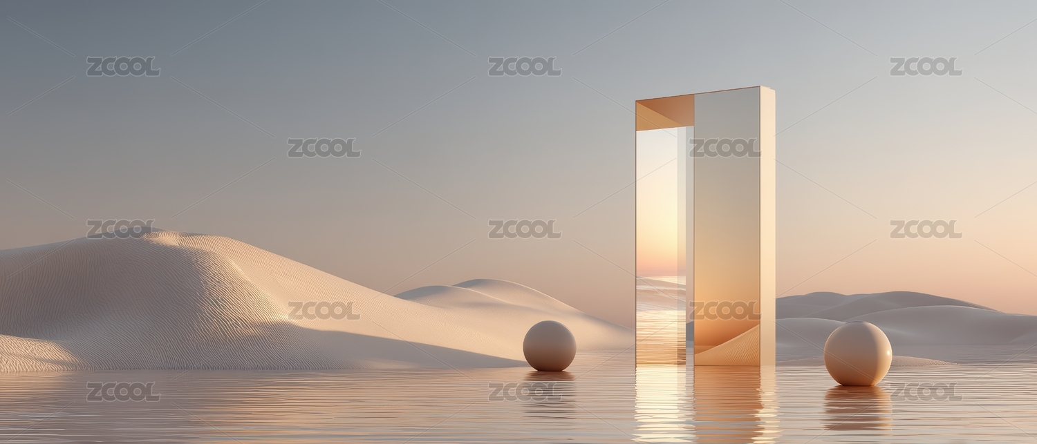 山脉,倒影,门户,梦幻,地平线,自然,艺术,设计,现代,灯光