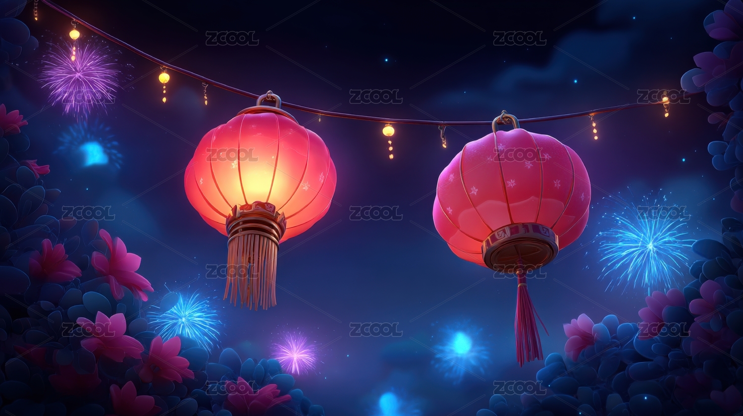 新年灯笼烟花庆典