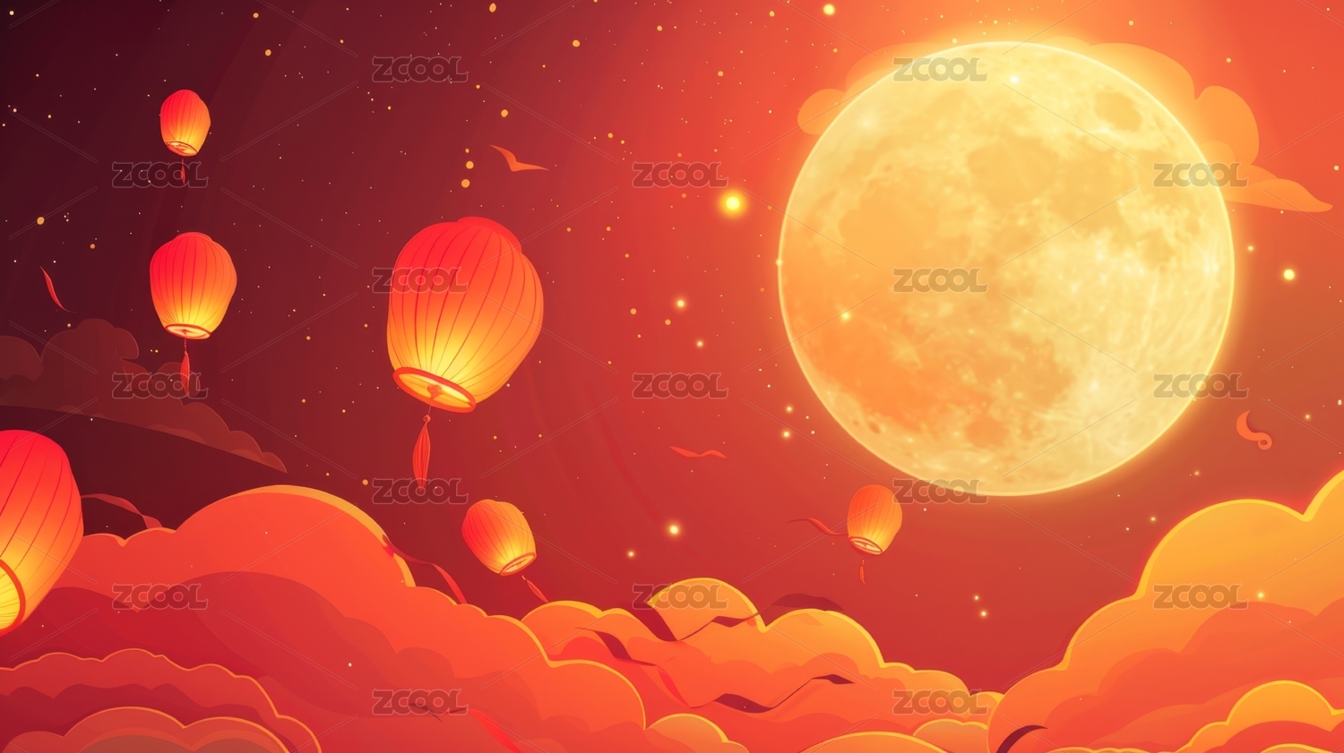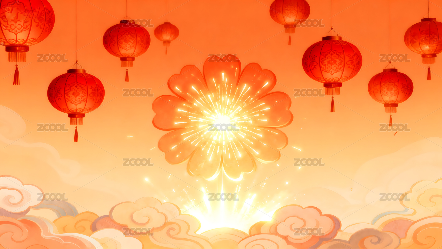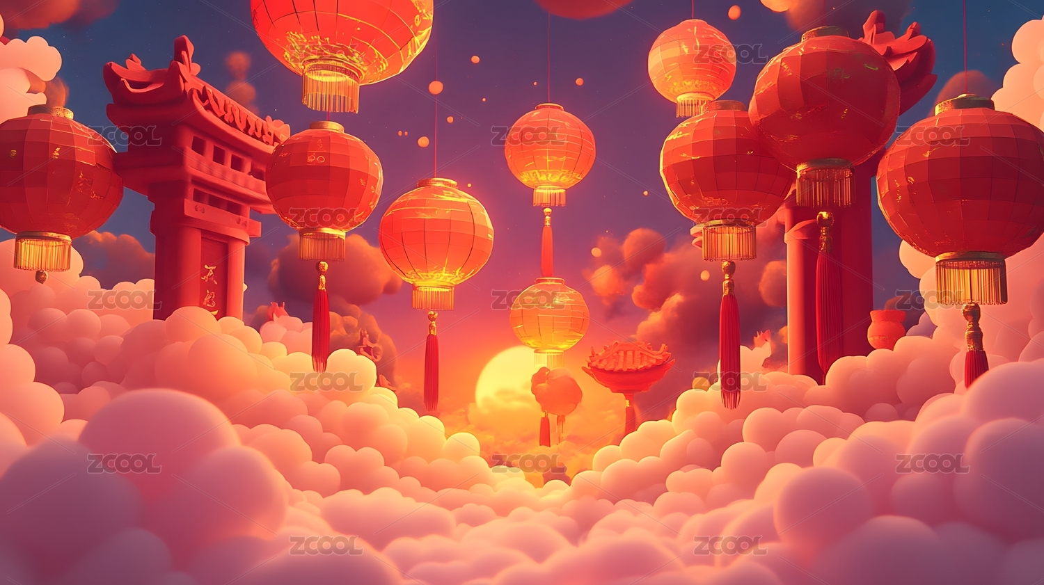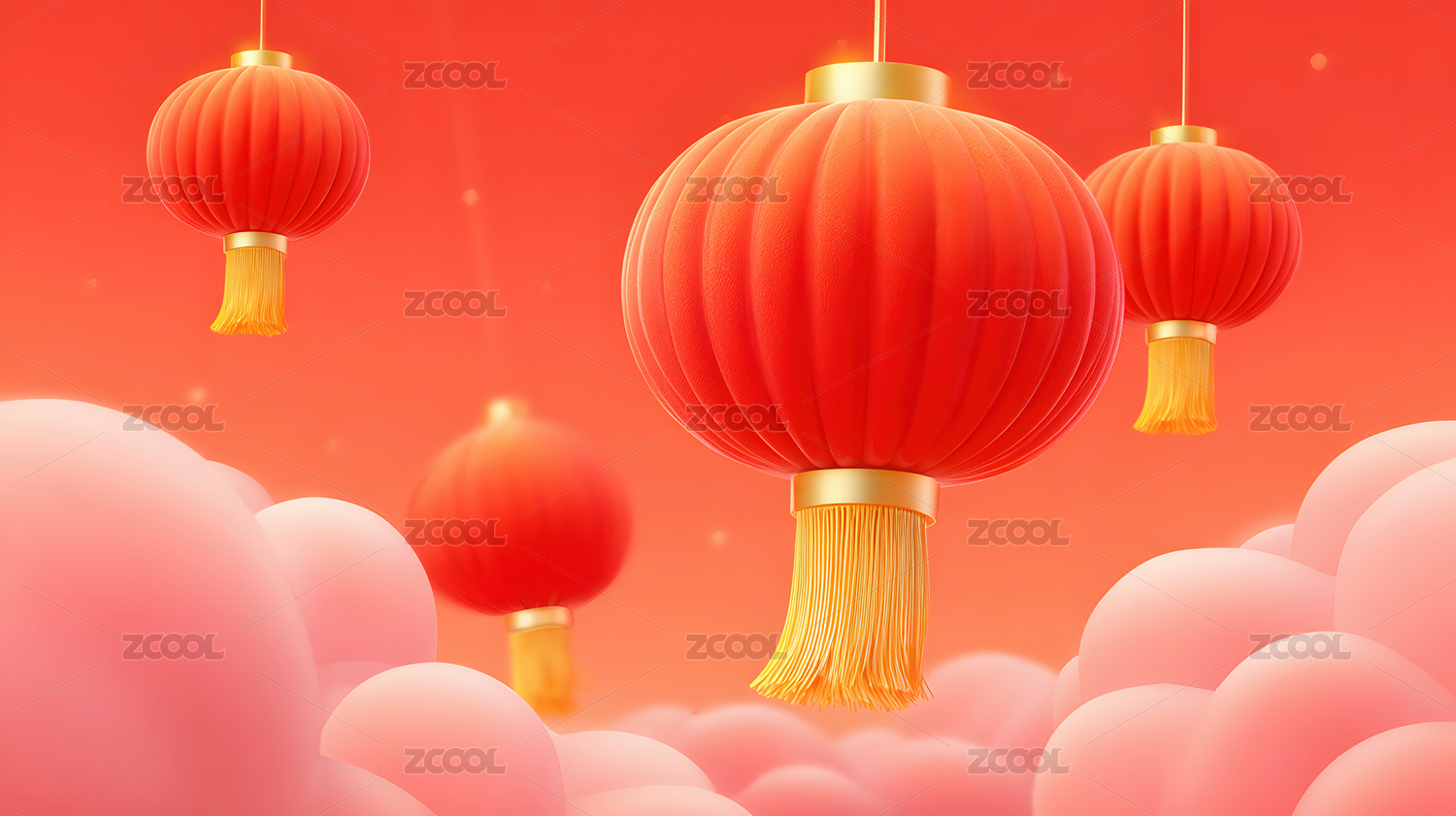 喜庆的中式红灯笼云朵背景
