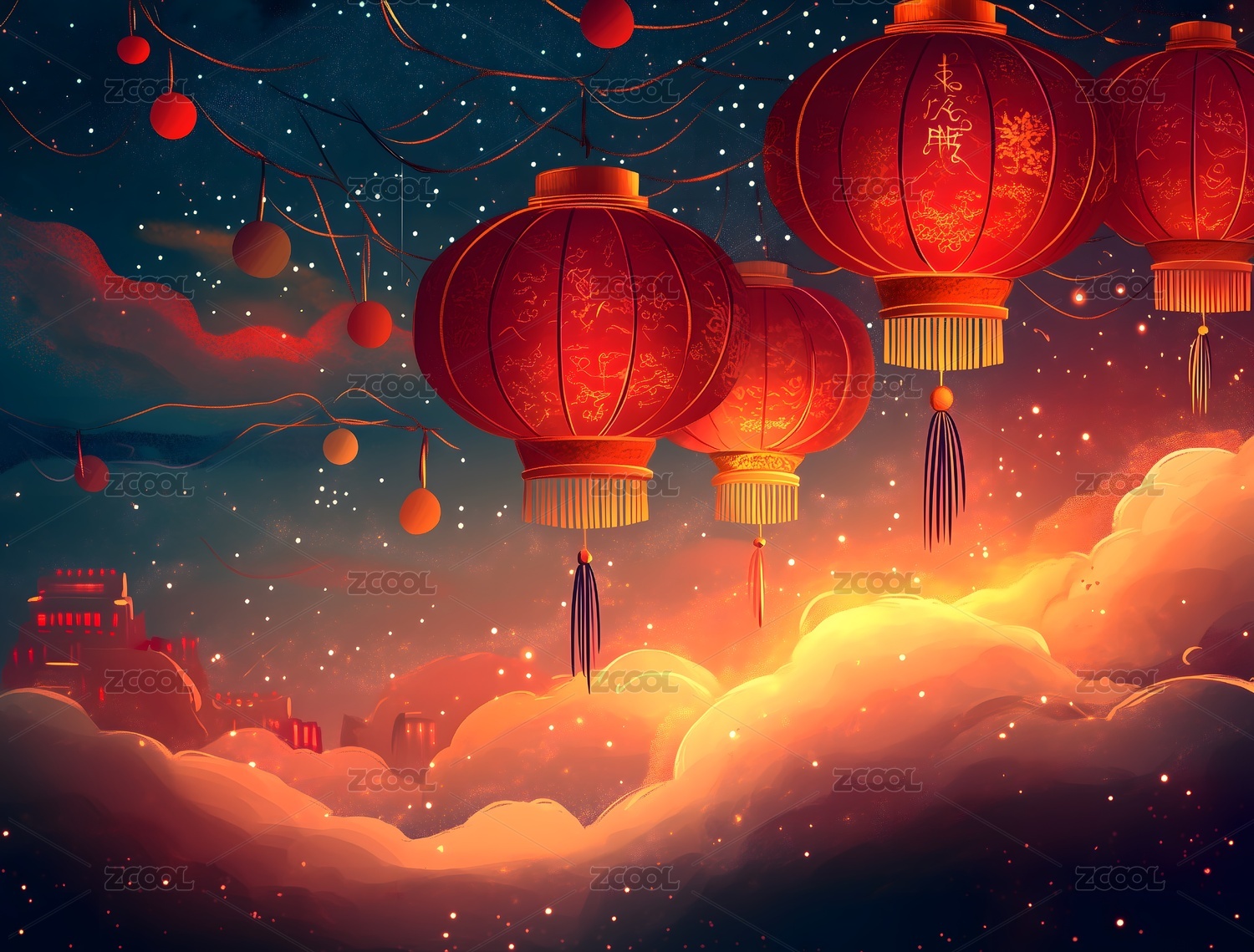 节日灯笼点亮夜空