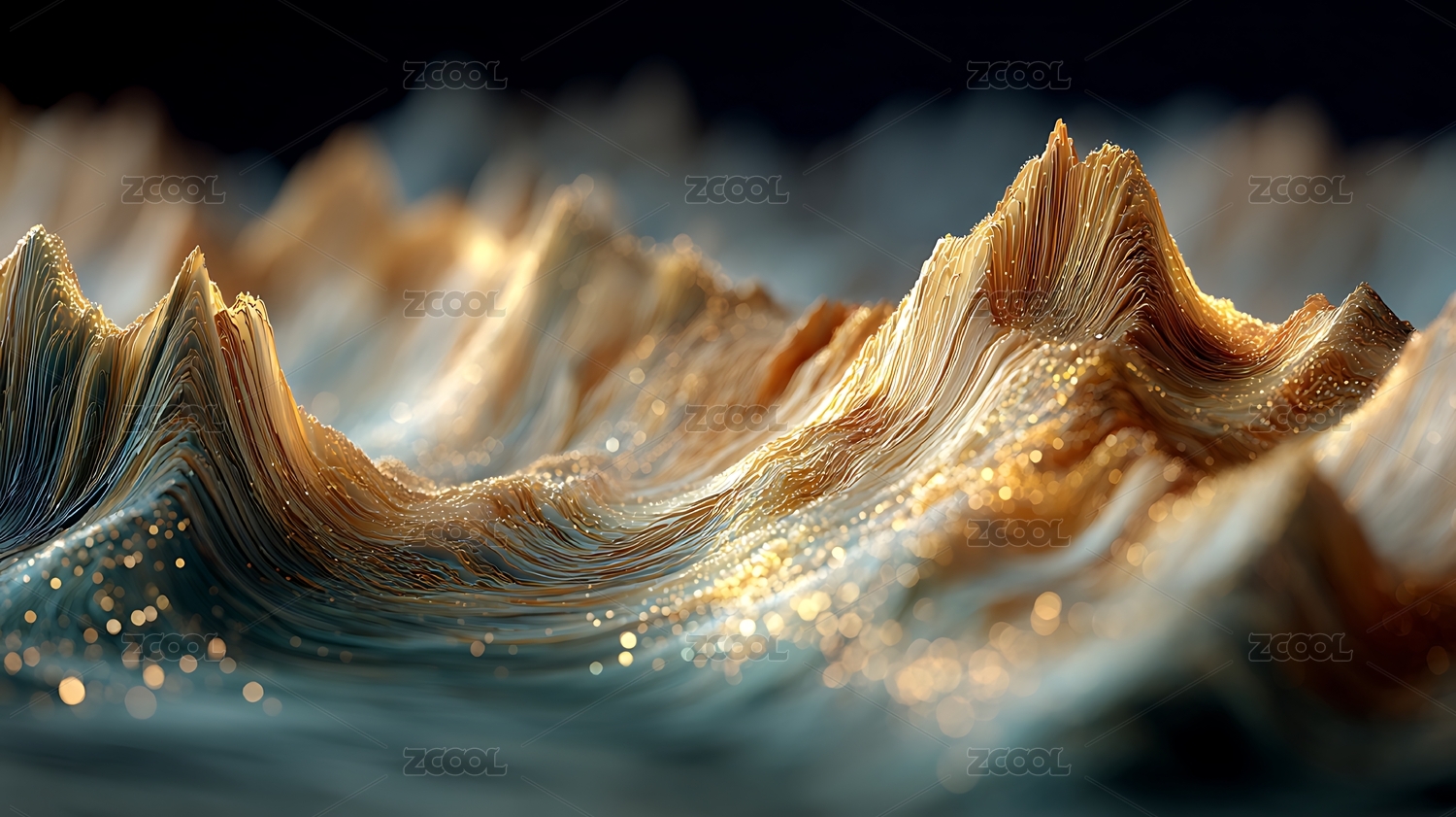 黑底抽象黑金色颜料山峰海浪流体3D立体