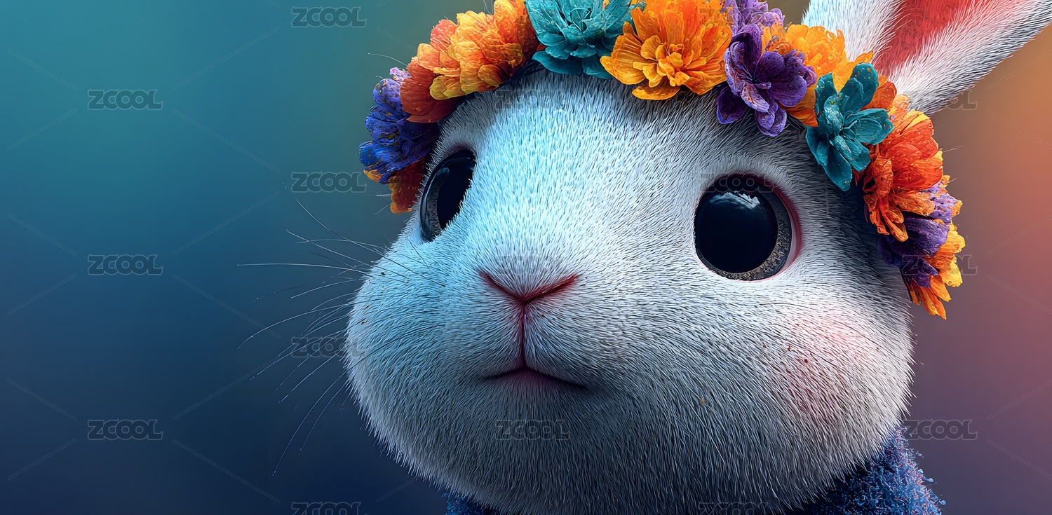 背景,可爱,壁纸,梦幻,鲜花,图片,蓝色,紫色,粉色,小兔