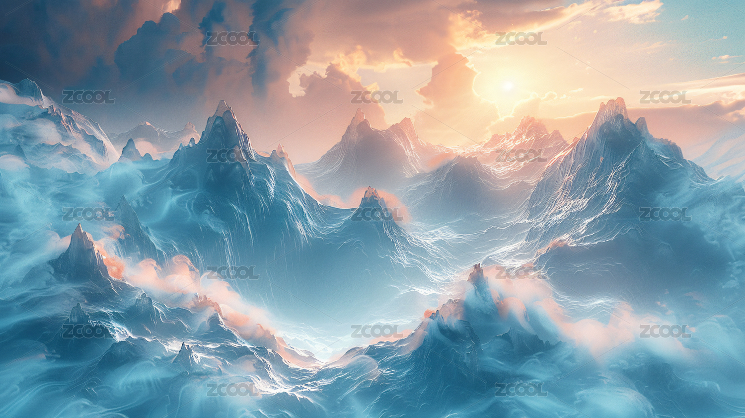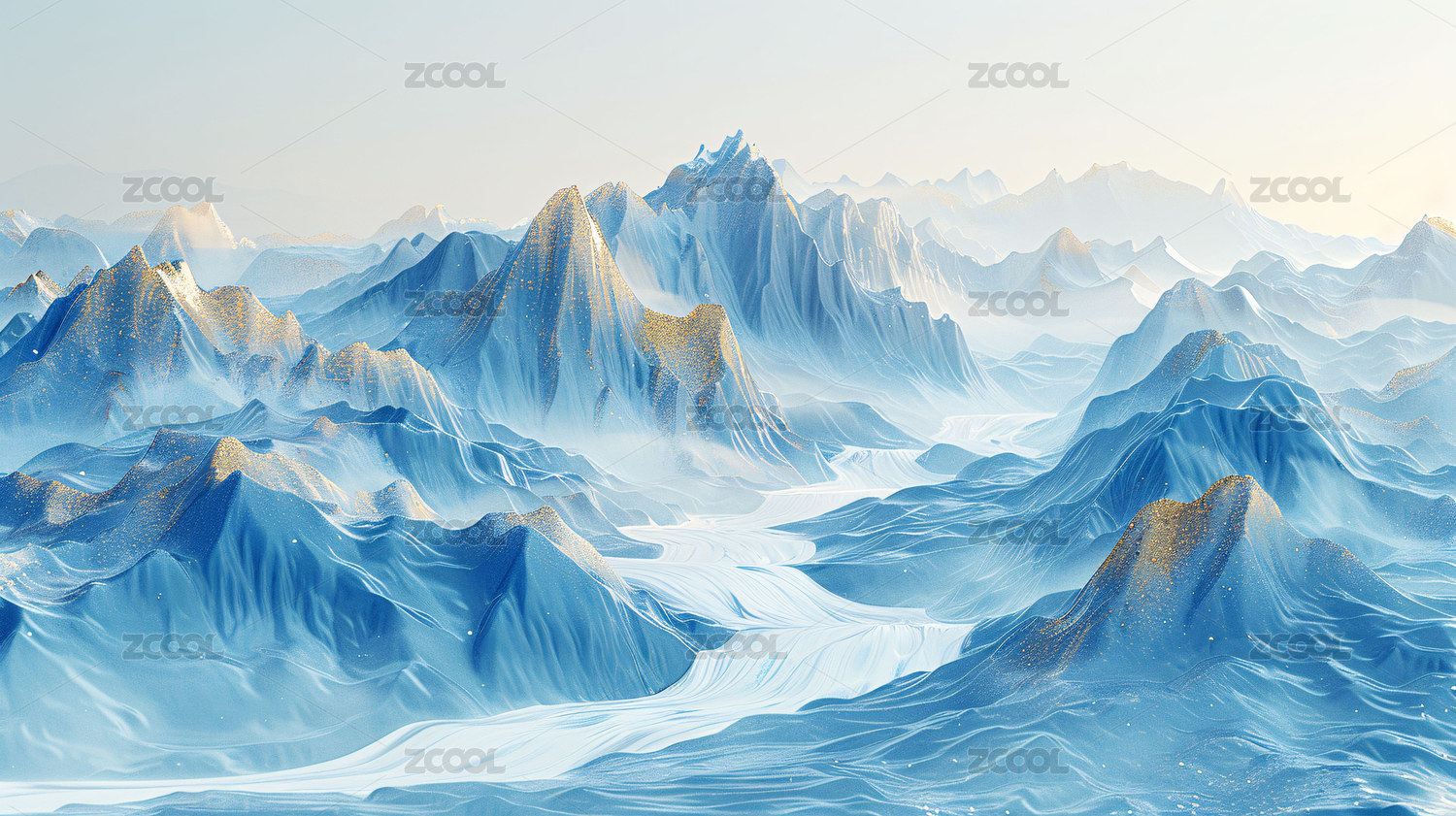 3D渲染山丘山脉高山大山山峰数字艺术插画