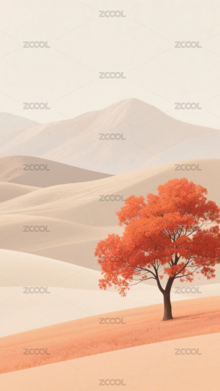 秋日红树简约风景