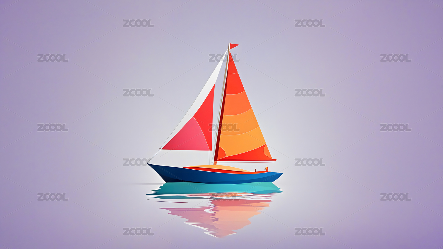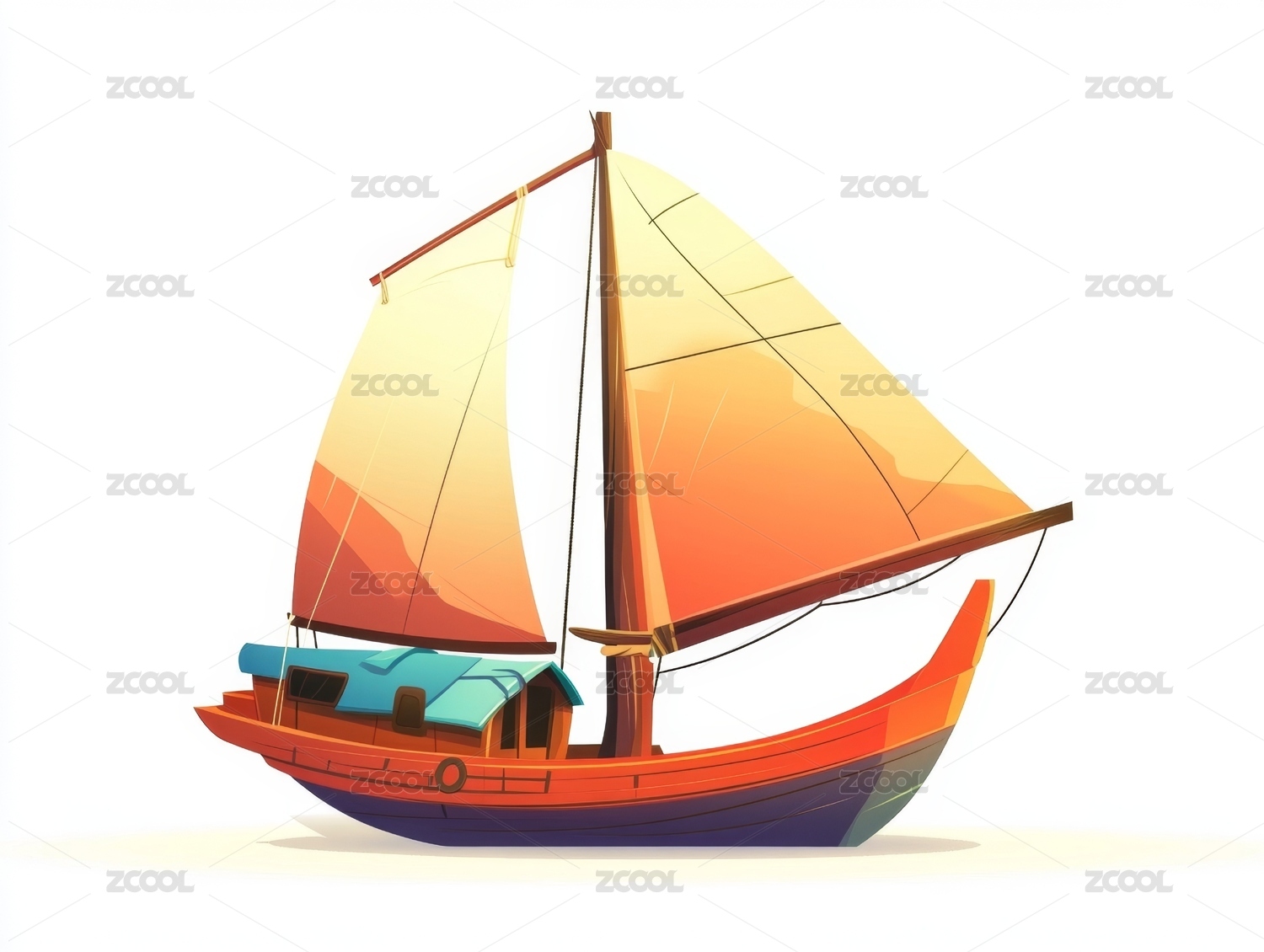彩色帆船插画