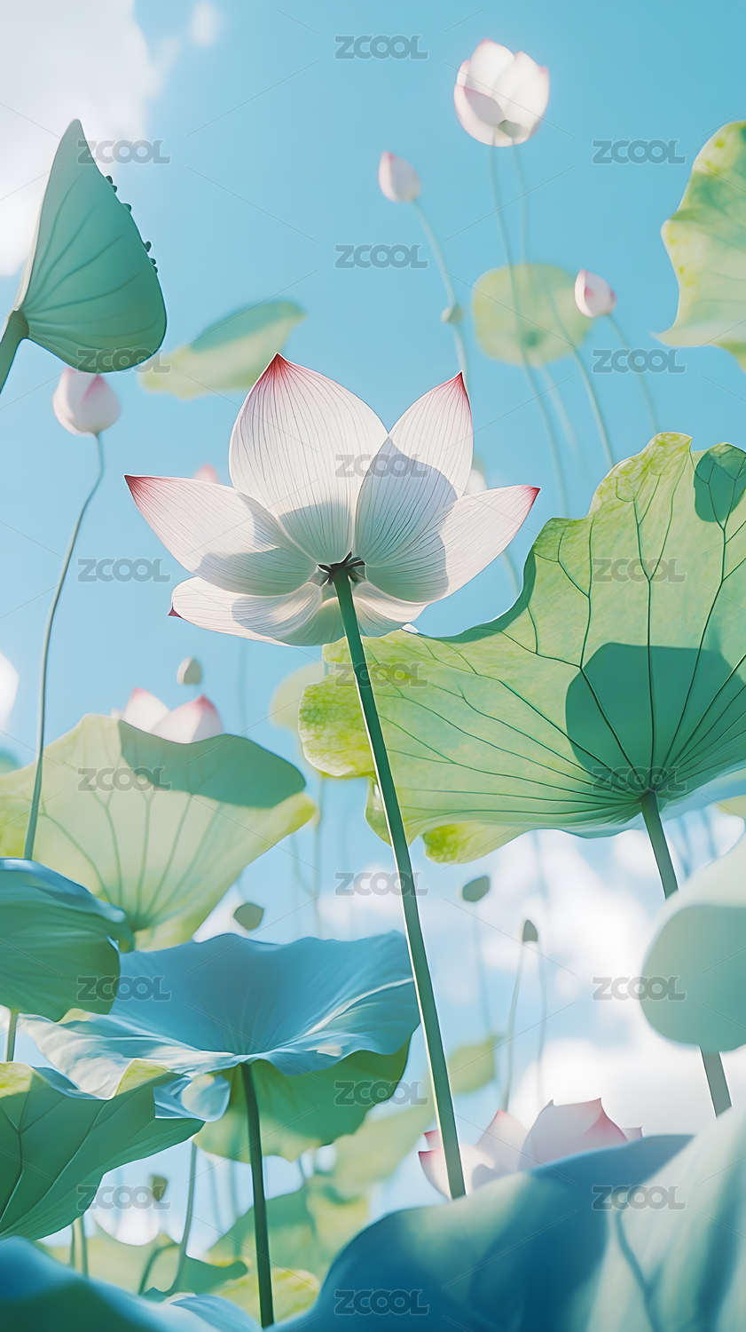 梦幻清透荷叶背景壁纸