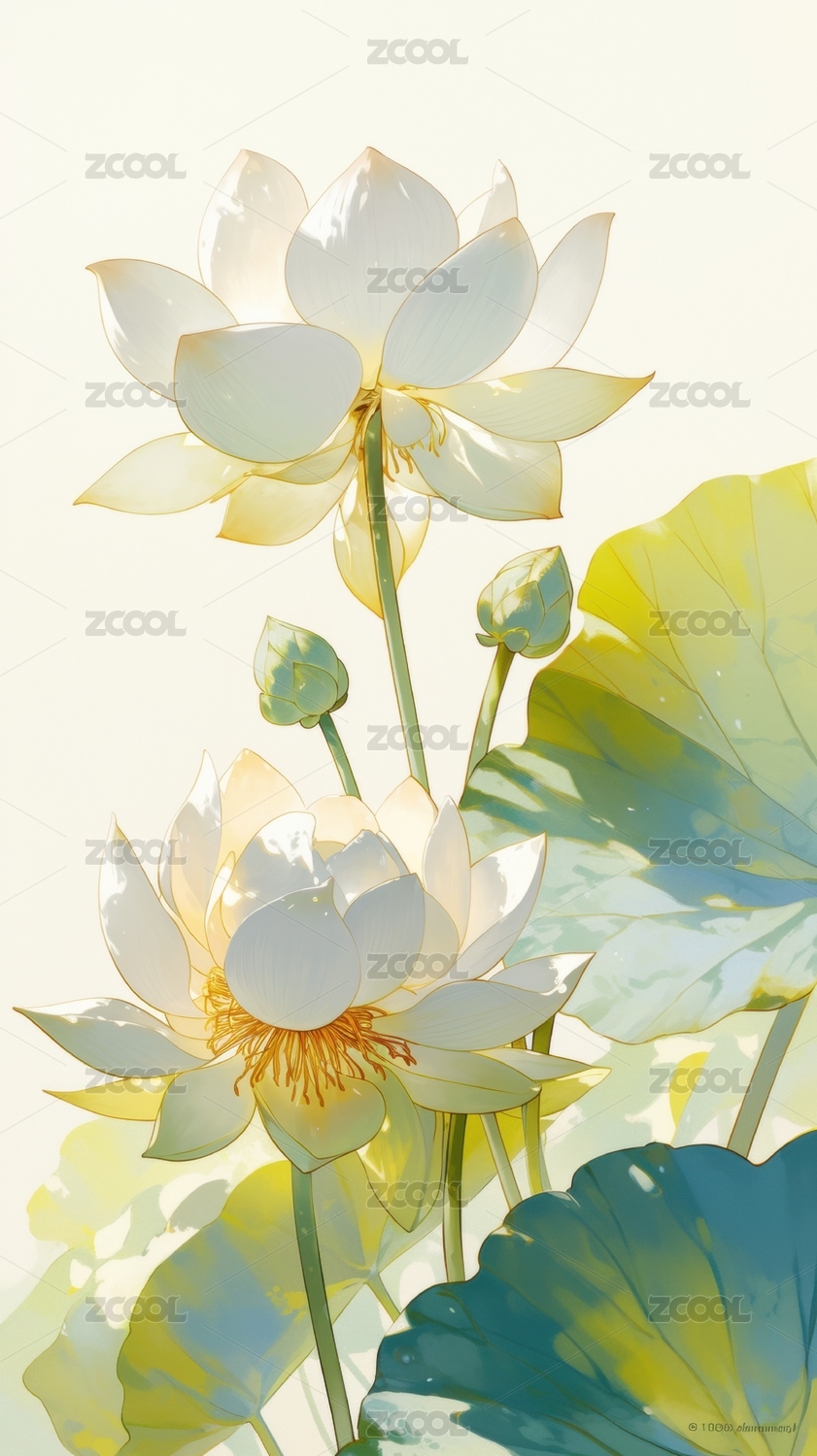 白色荷花清新风花卉装饰场景