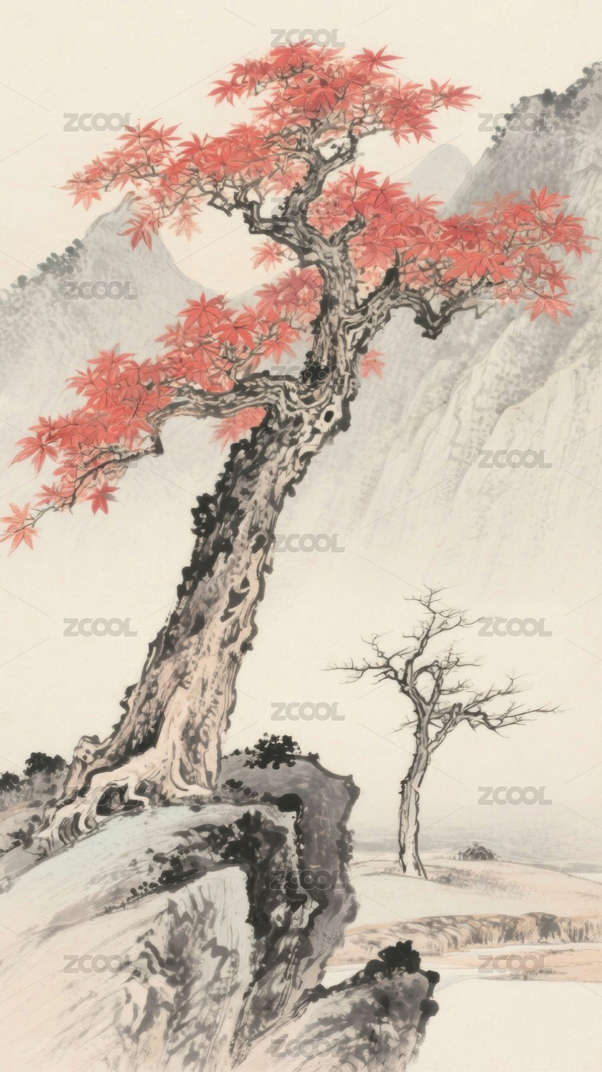 传统,中国,绘画,红枫,风景,自然,景色,笔法,秋天,景观