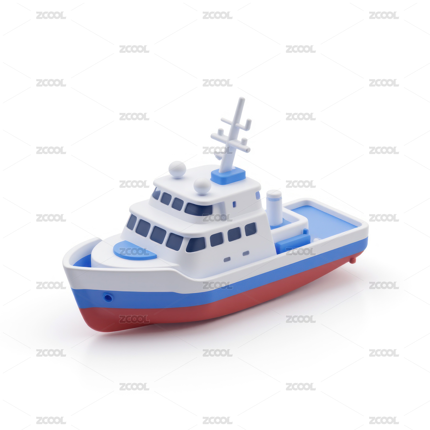 玩具,船,白色,蓝色,窗户,红色,底部,玩具船,模型,儿童