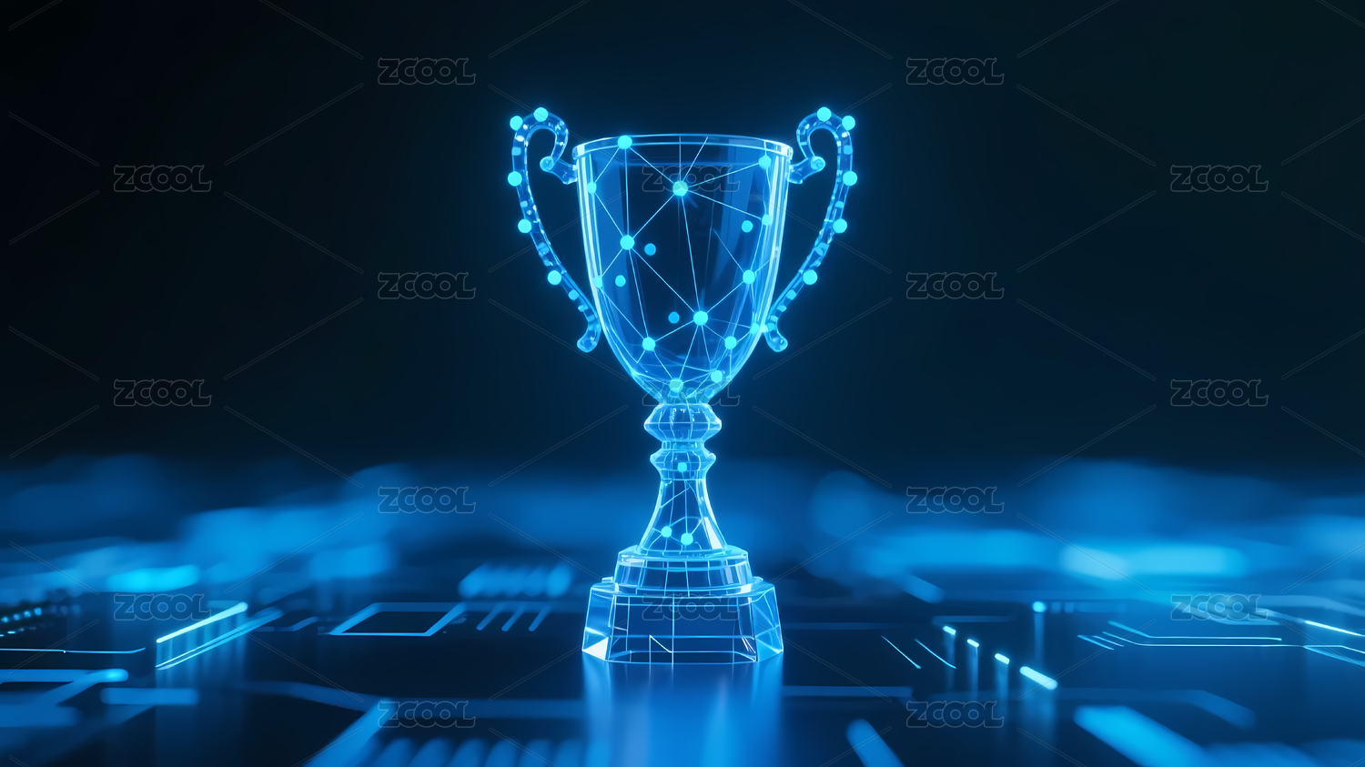 主视觉,水晶,奖杯,科技,颁奖,场景,光效,蓝色,粒子,竞赛