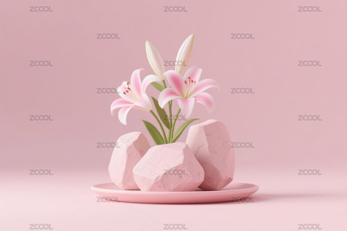 主视觉,场景,百合,装饰,粉色,产品,展示,花卉,简约,立体