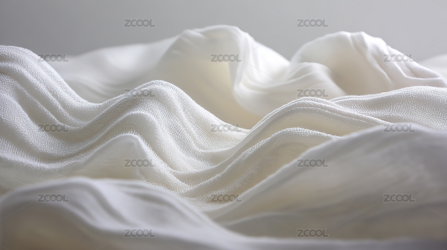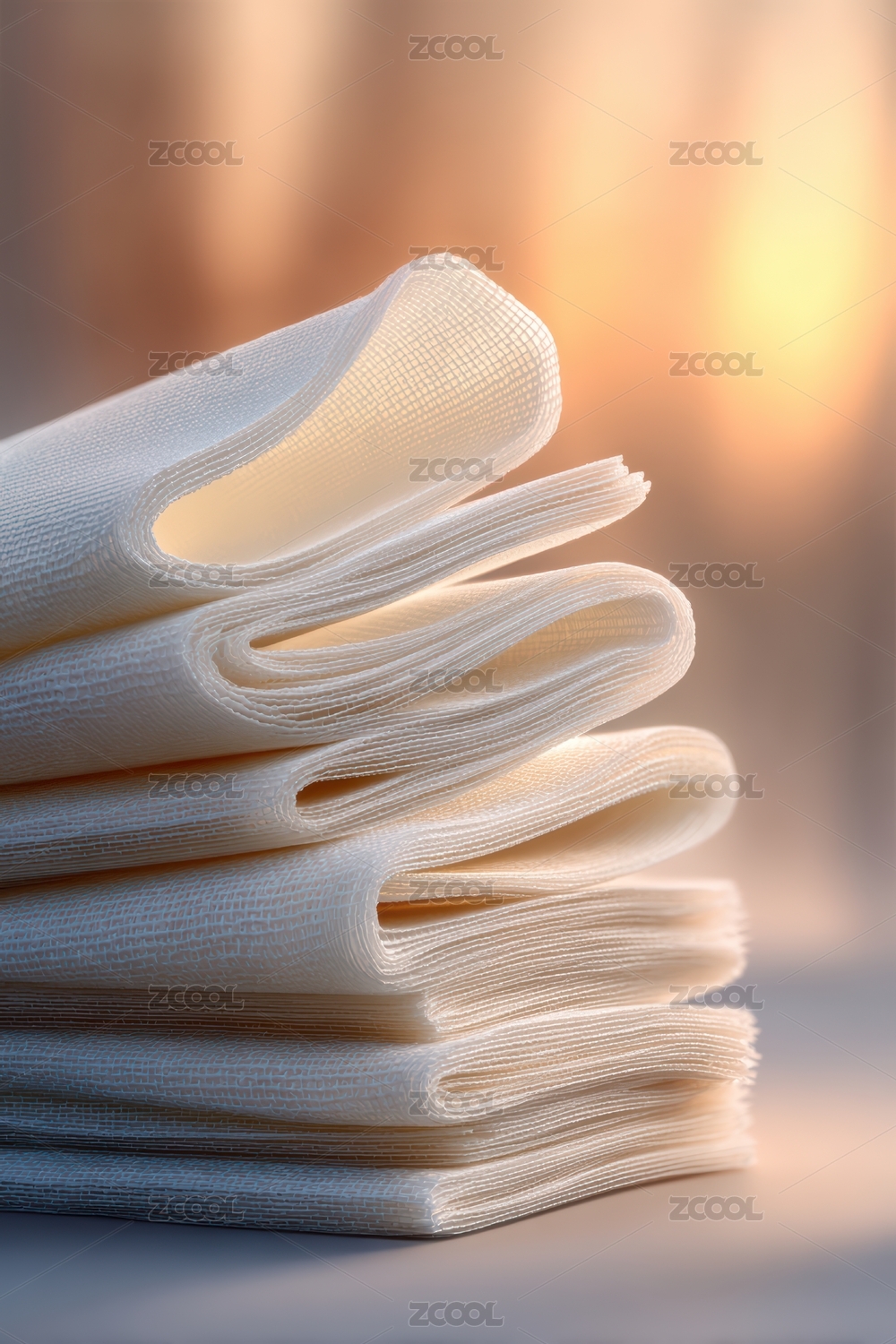 柔软洁白的棉质布料堆叠在温暖阳光下