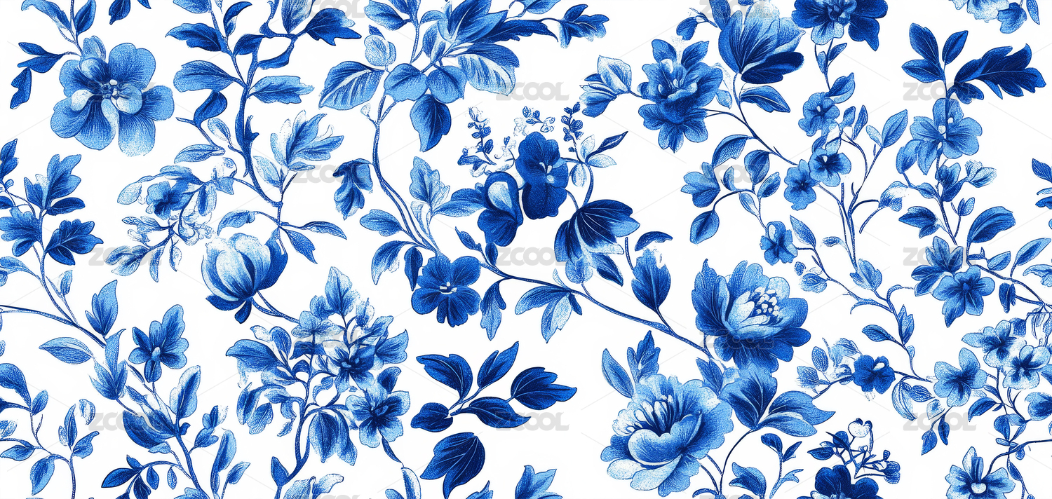 青花瓷蓝色和白色复古花朵水彩插画白色背景