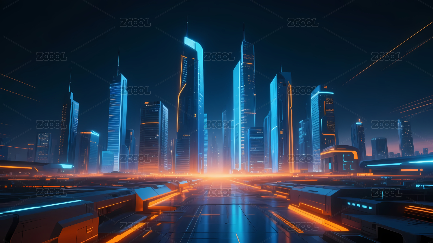 蓝色,背景,科技,高楼,霓虹灯,城市,大厦,车辆,夜空,速度