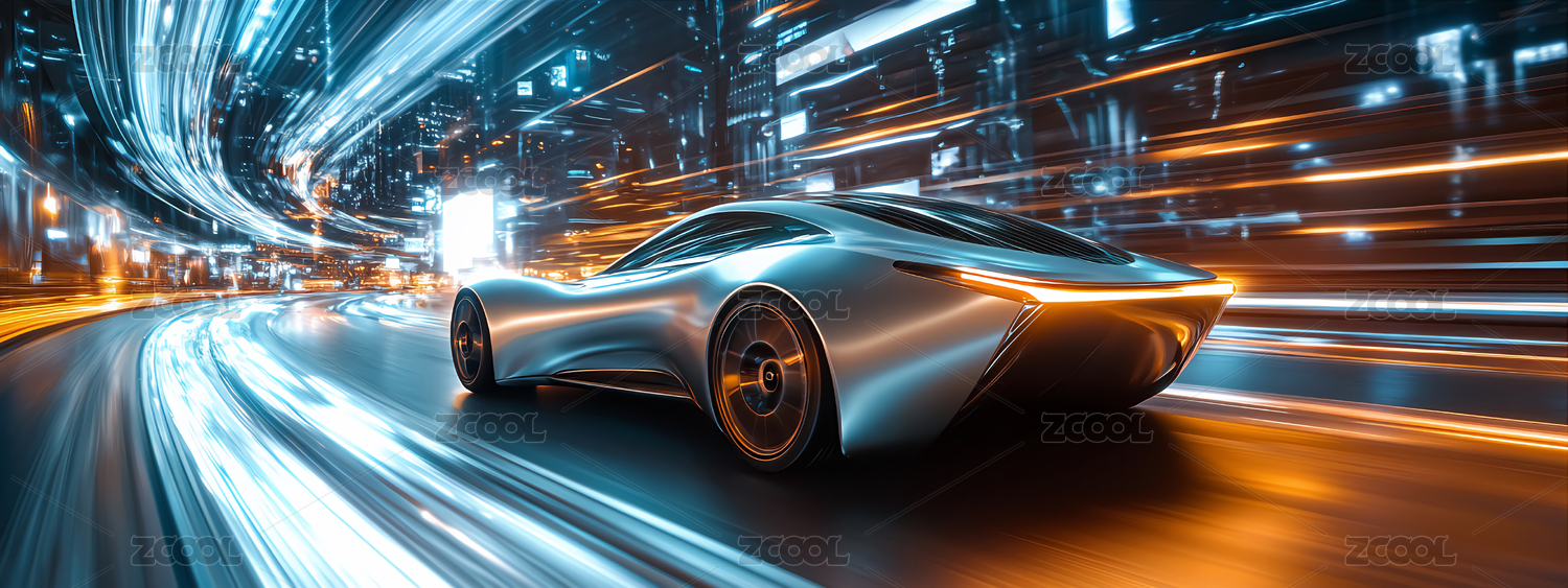 疾驰的未来感跑车与光影轨迹