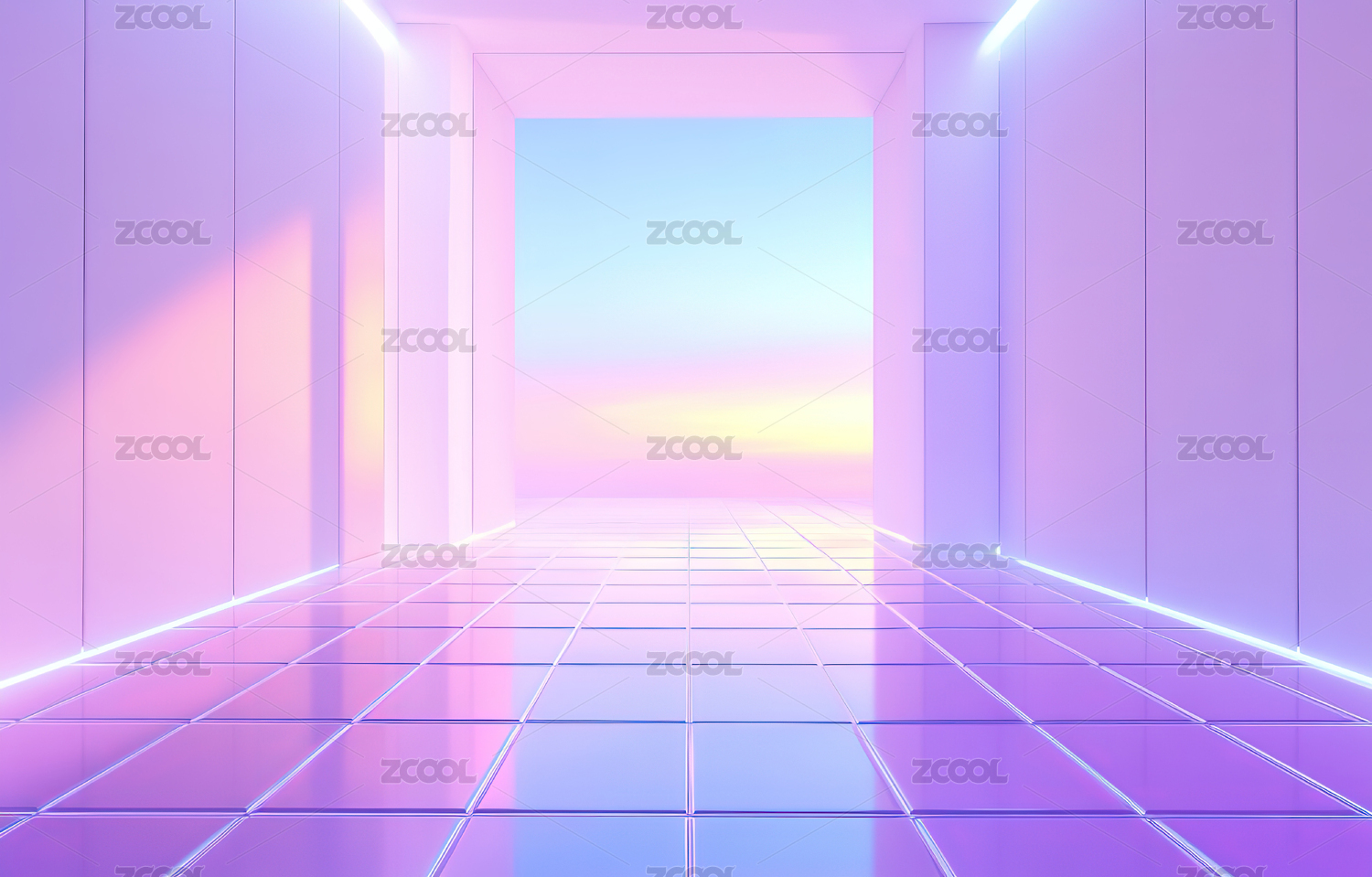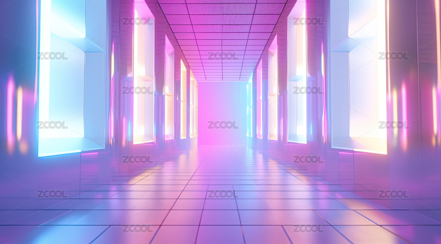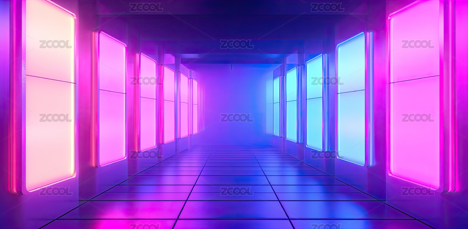 抽象霓虹灯光建筑空间走廊背景时尚朋克摇滚