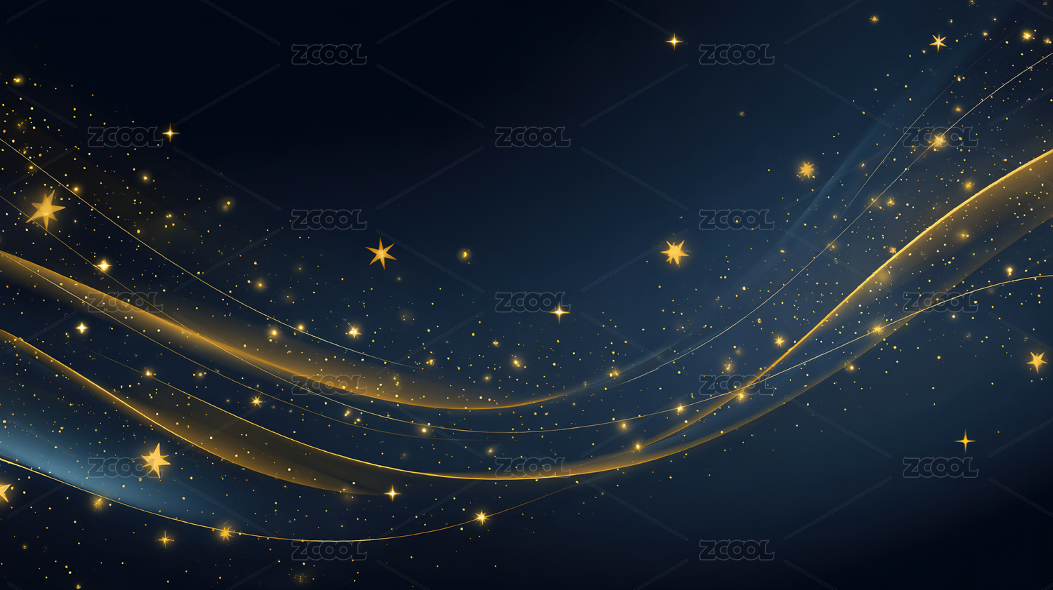 金色流线与闪烁星光的抽象背景
