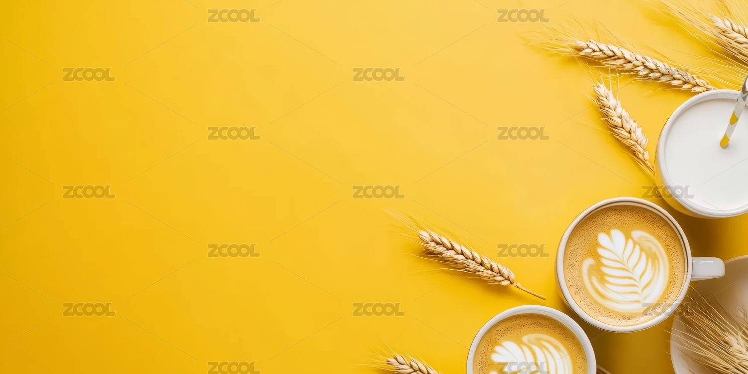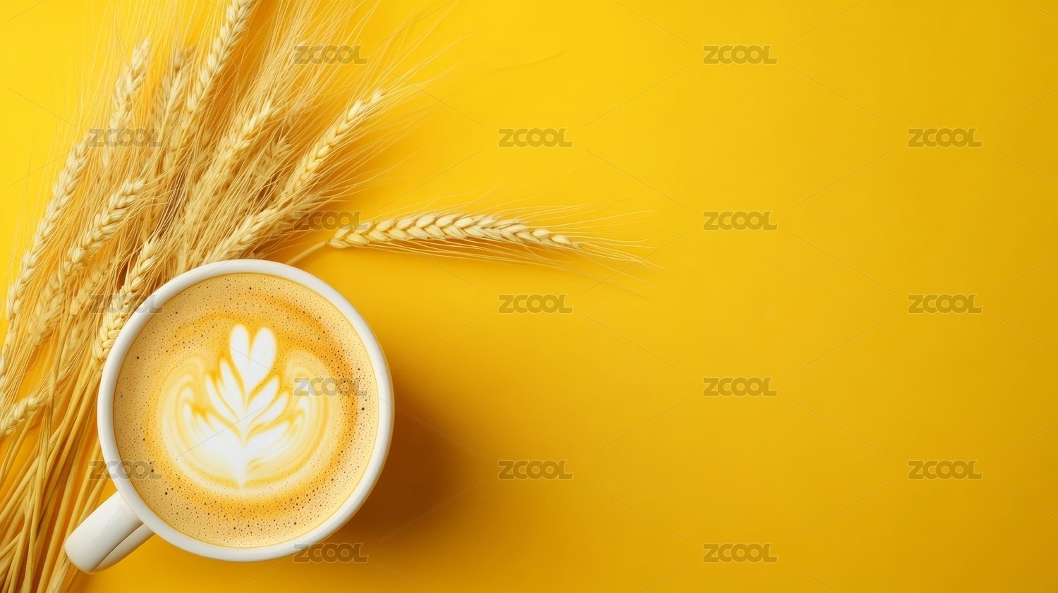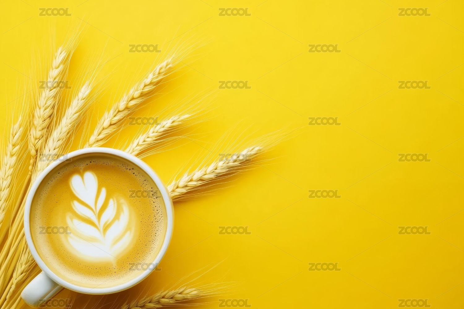 主视觉,场景,质感,背景,咖啡,拉花,黄色,静物,麦穗,饮品