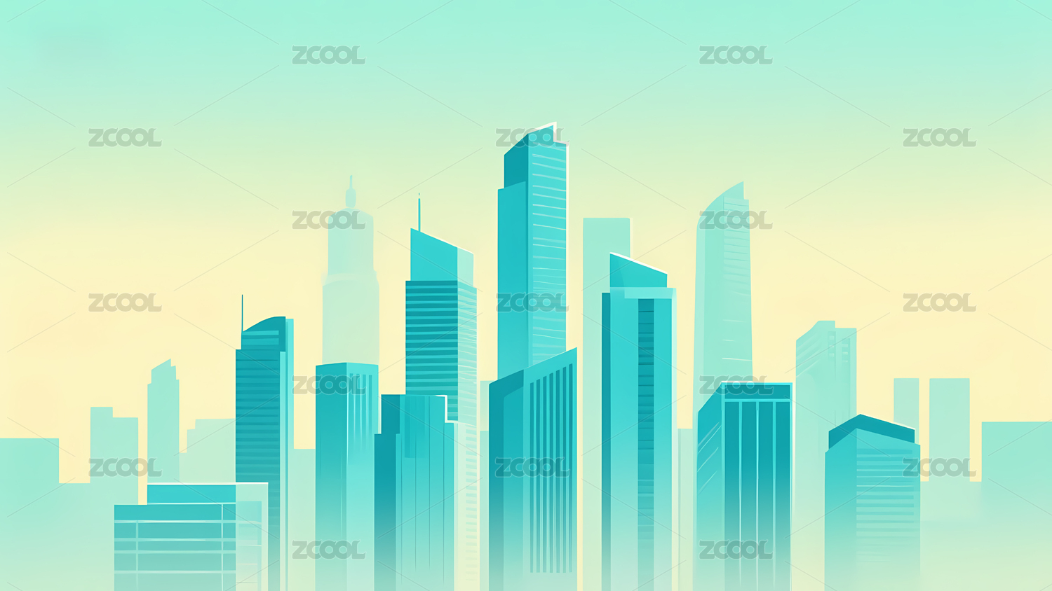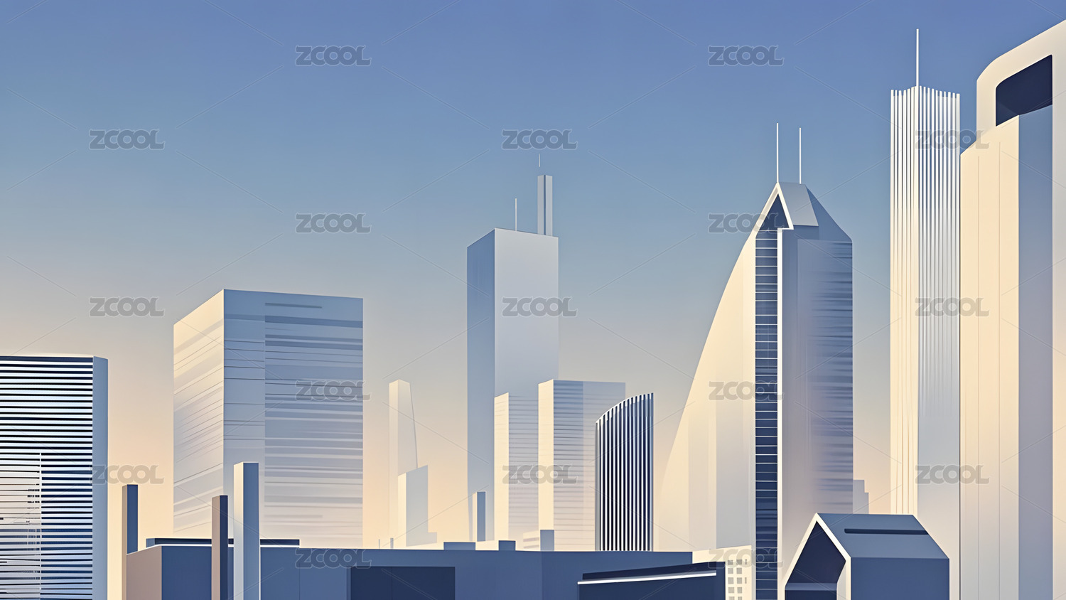 日落时分现代摩天大楼林立天际线绚烂夺目