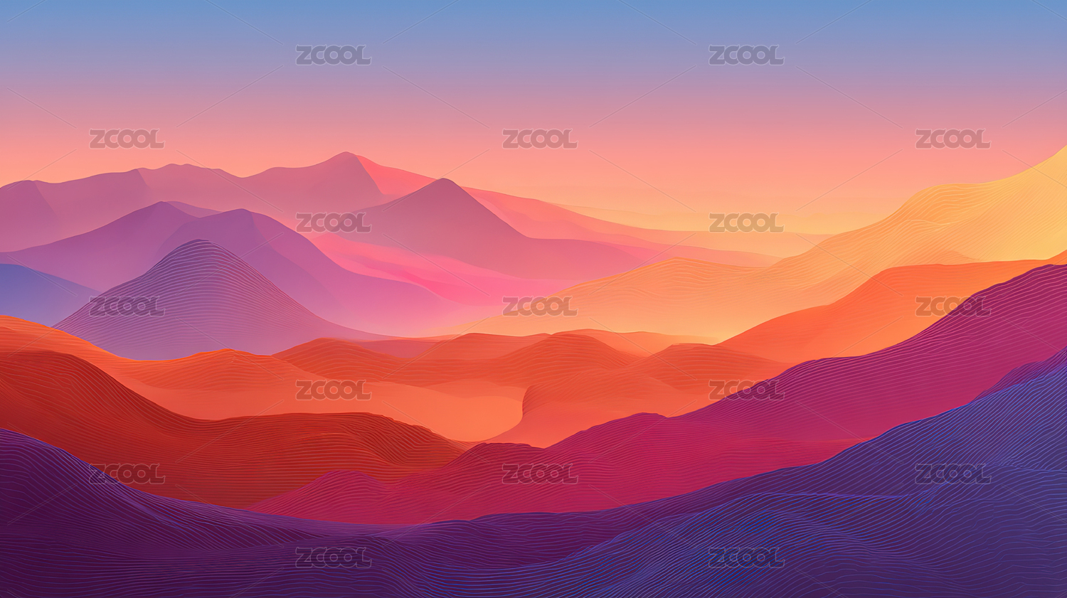 彩色渐变山峦风景图