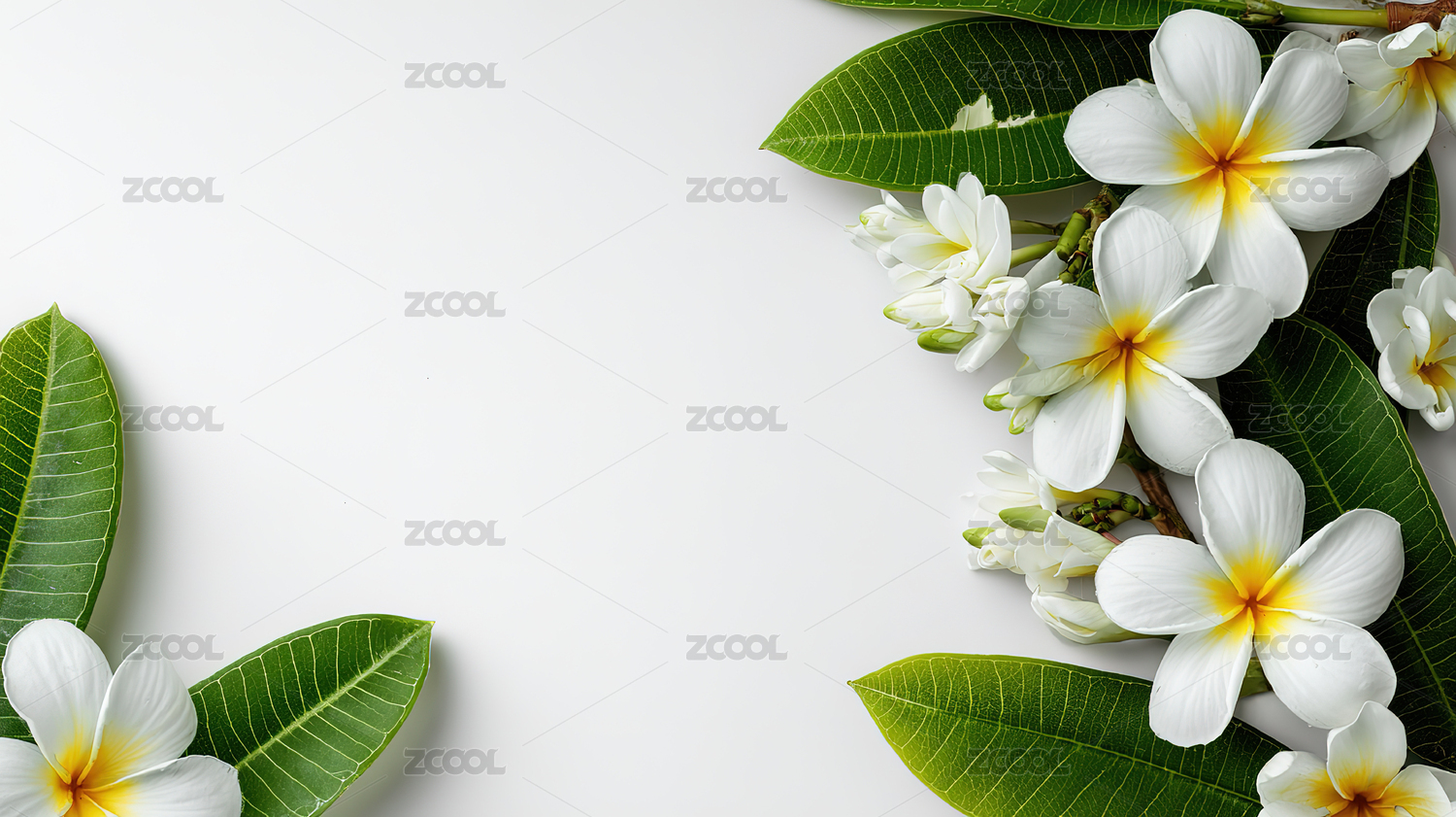 主视觉,栀子,双色,花卉,展示,场景,叶片,绿色,白色,背景