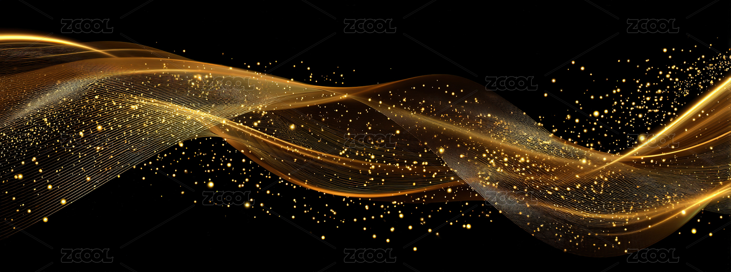 金色波浪线条与星光