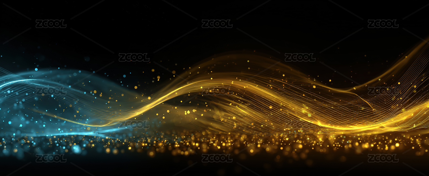 金色与蓝色光流交织的抽象背景