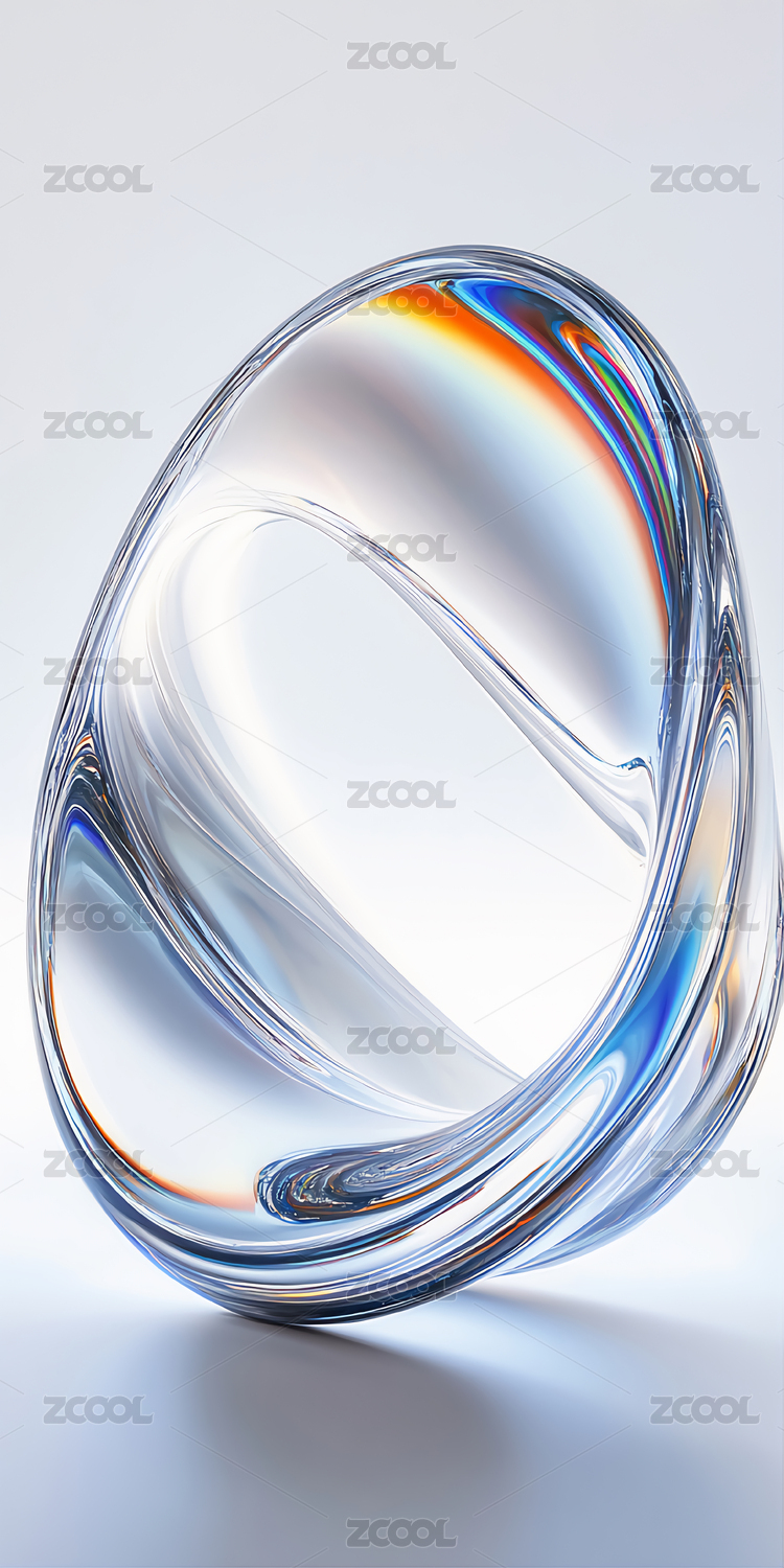 透明玻璃雕塑置于白色底座 静谧极简场景
