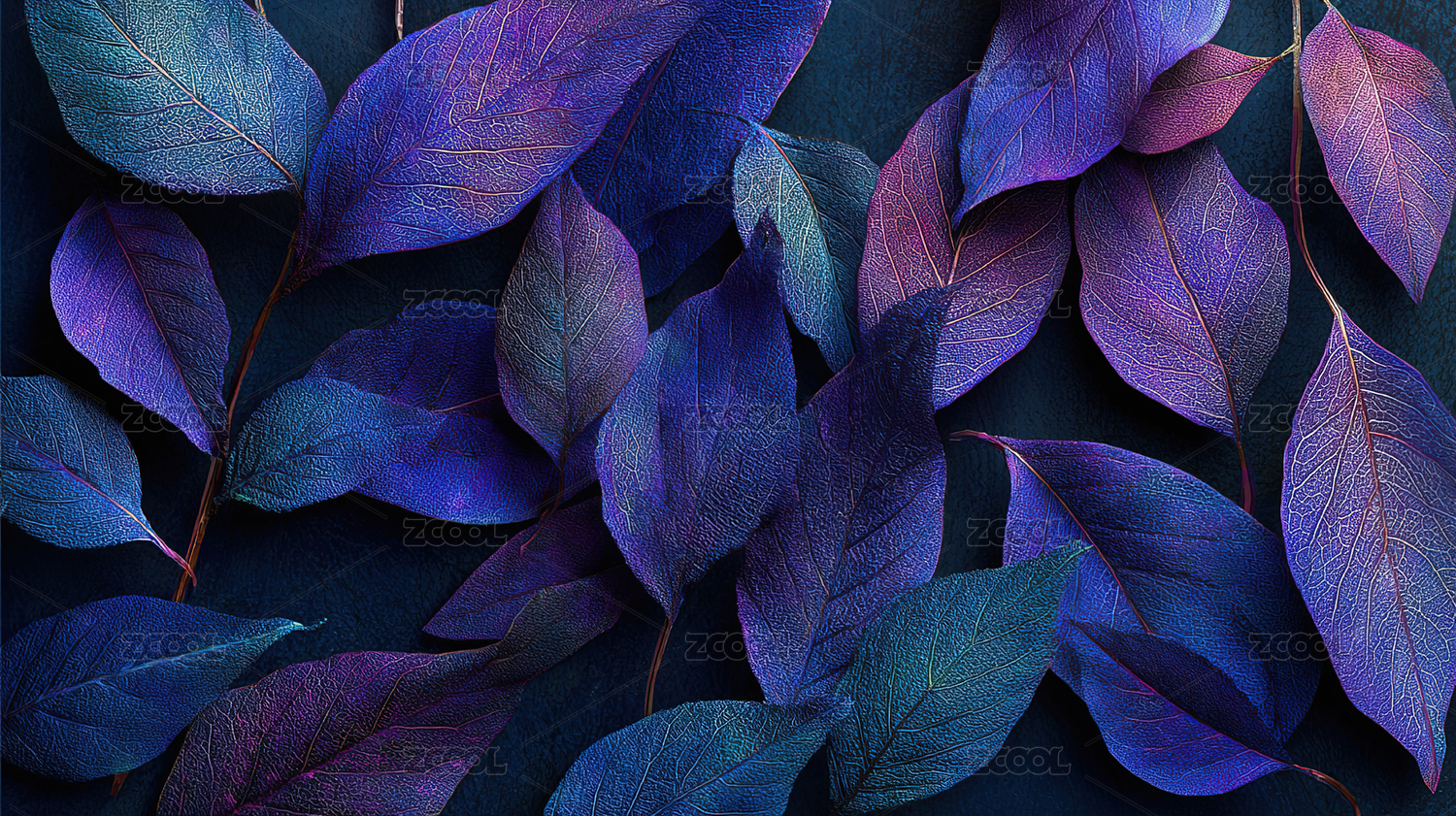 梦幻唯美蓝紫色调树叶系列背景