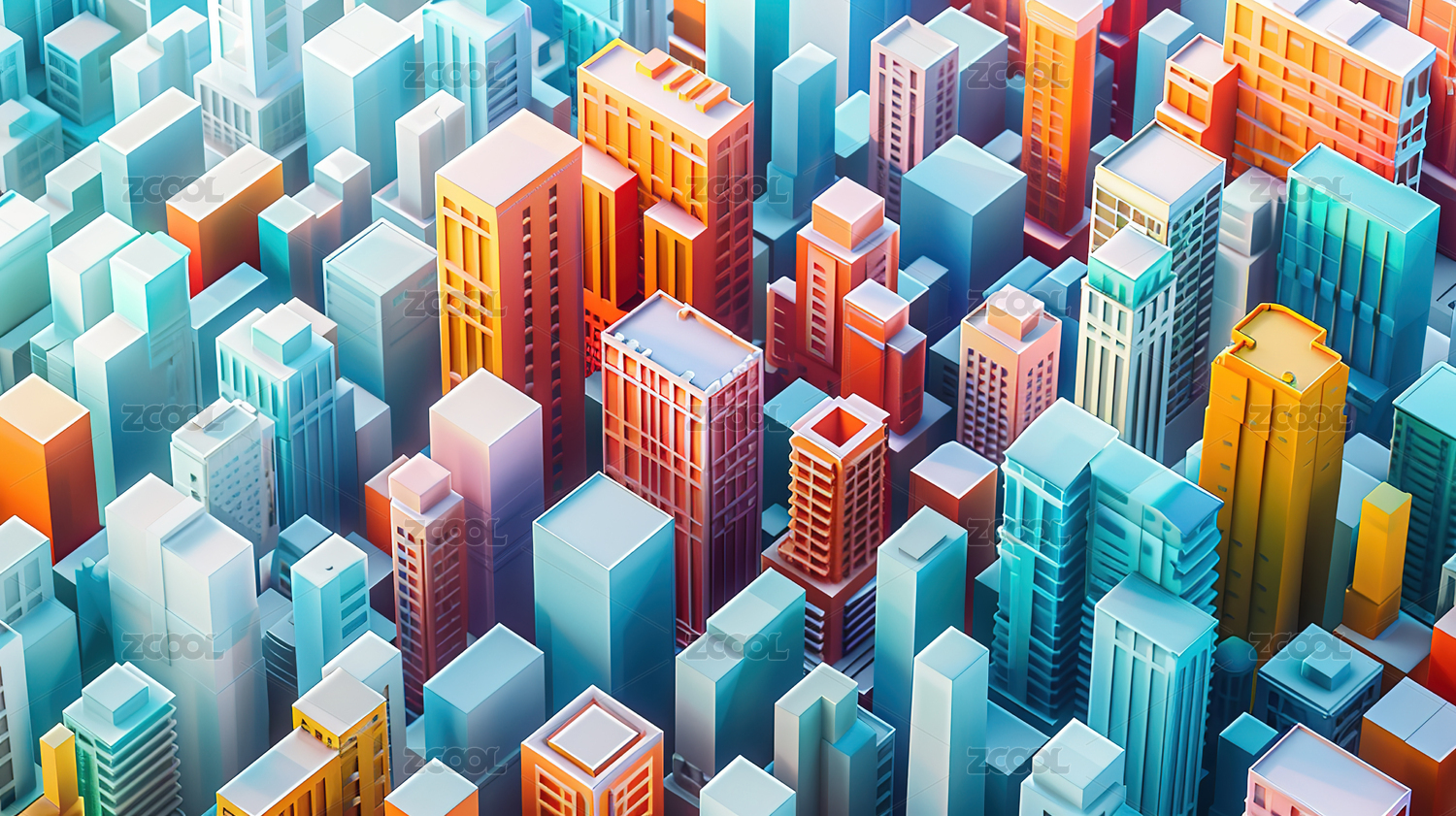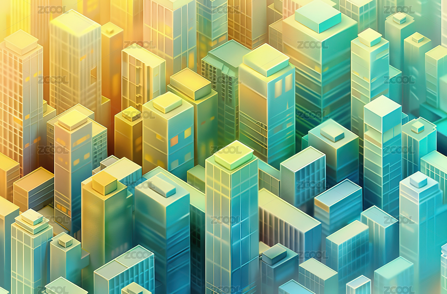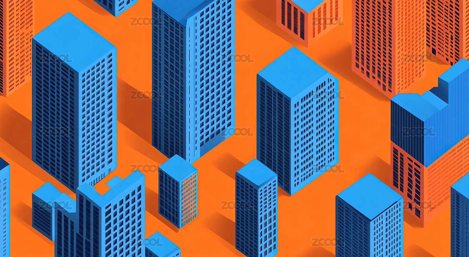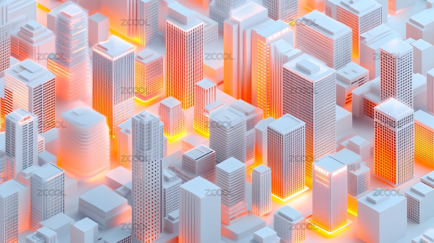 抽象城市夜景,白色建筑沐浴橙色光辉