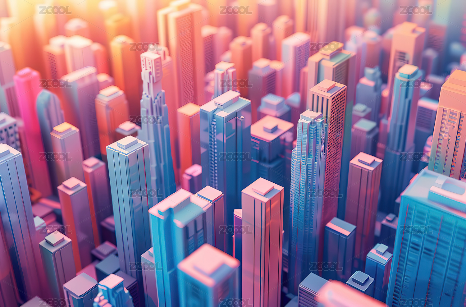 抽象彩色晶体结构的城市建筑3D立体插画