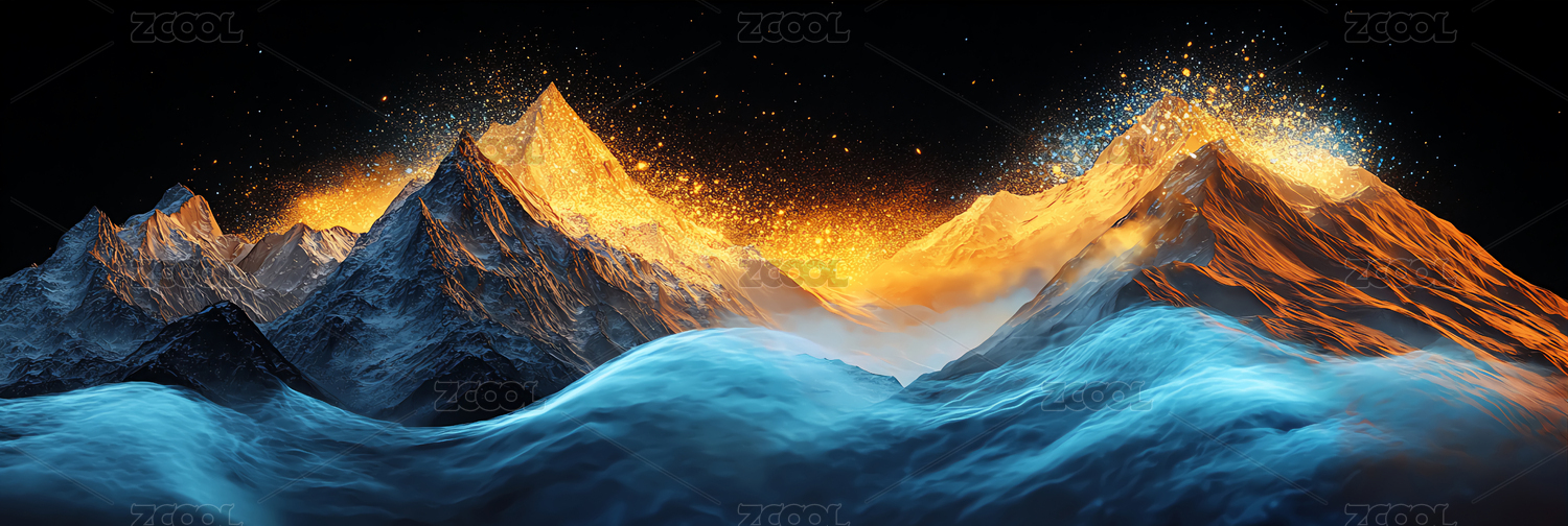 日照金山,高山,雪山,金色,阳光,光芒,寒冷,冬天,天空,地形
