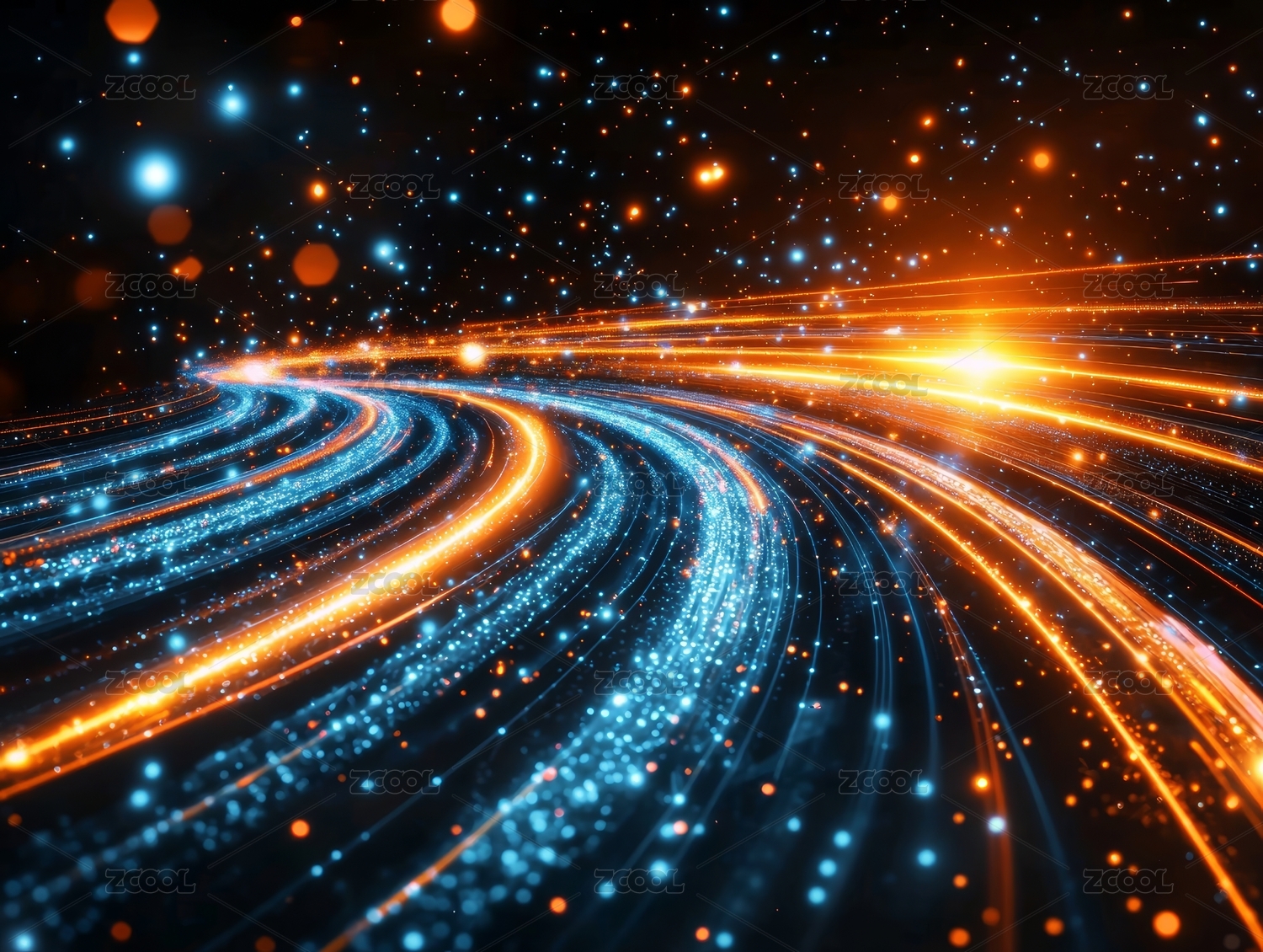 蓝色和橙色弧形发光粒子科技抽象概念背景
