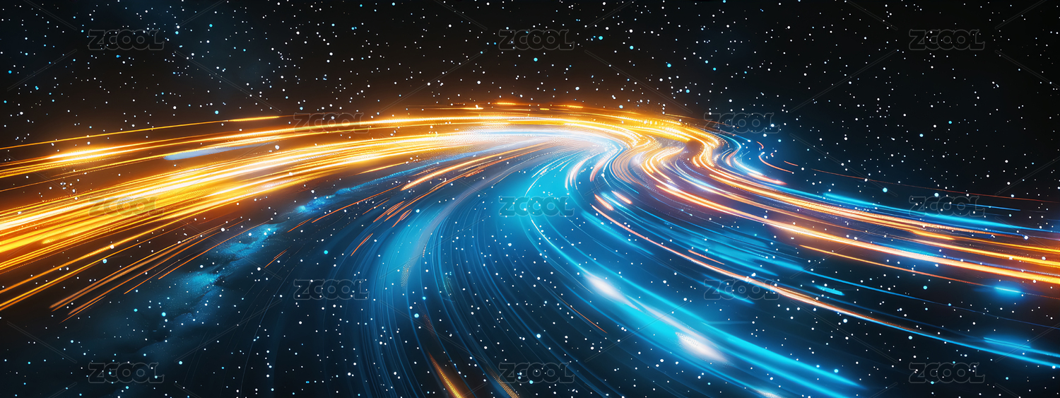 炫彩未来科技感3D蓝橙光流抽象风格背景