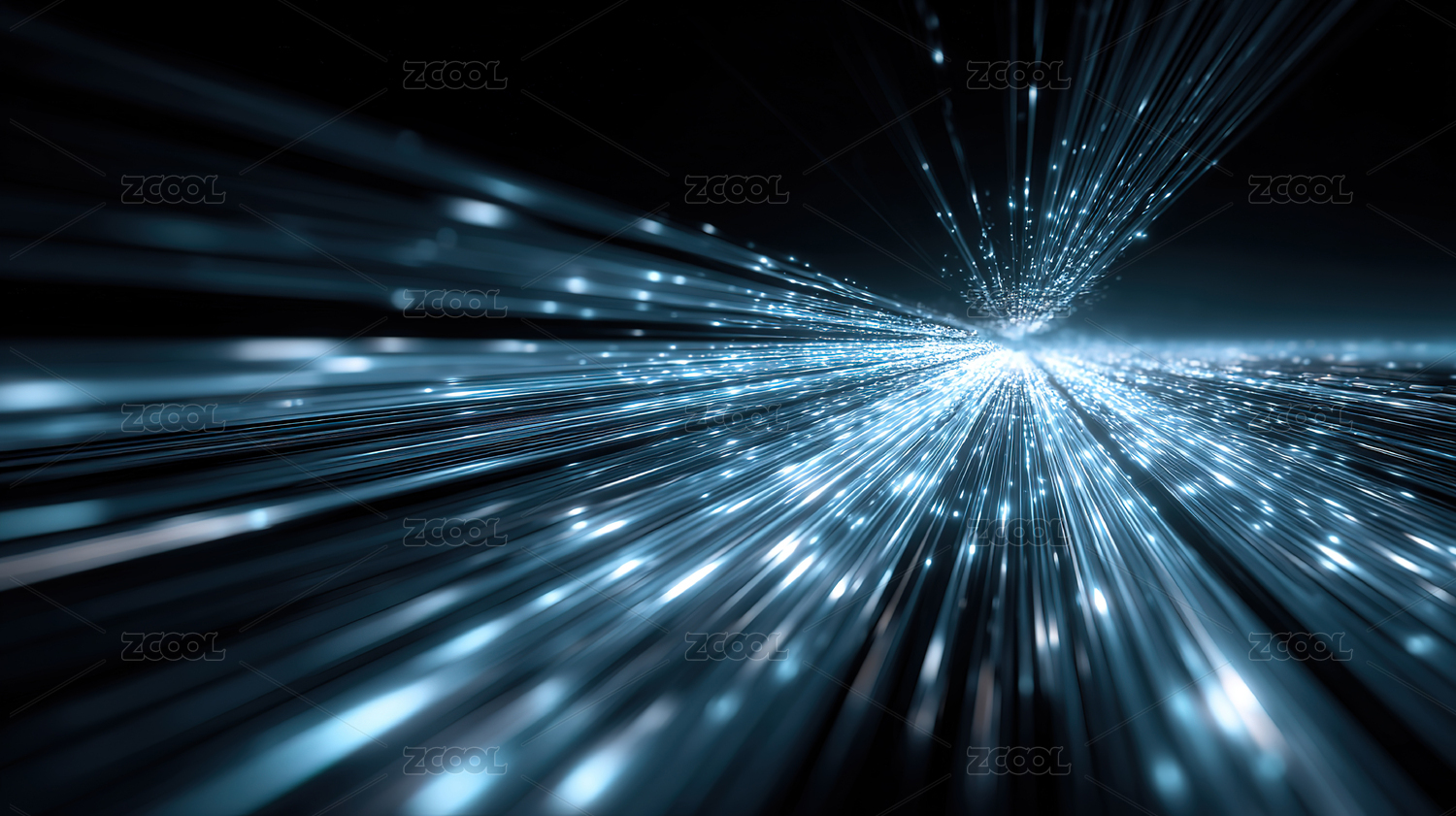 蓝色光线汇聚的未来通道,闪耀着点点星光